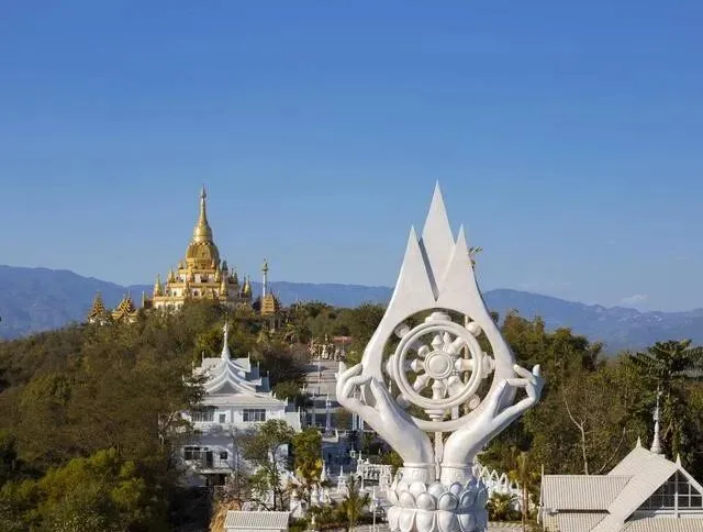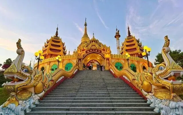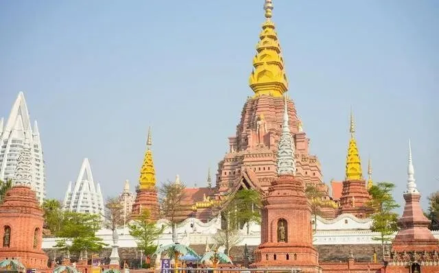 走在街上就很有感觉了 , 行道树挂着椰子、菠萝蜜 , 满眼热带气息。 东南亚风情的建筑 , 酸酸辣辣的傣味小吃 , 云南标配的蓝天白云...在金塔和银塔之间看一场日落 , 那种松弛感 , 独属于芒市 , 别的地方给不了。