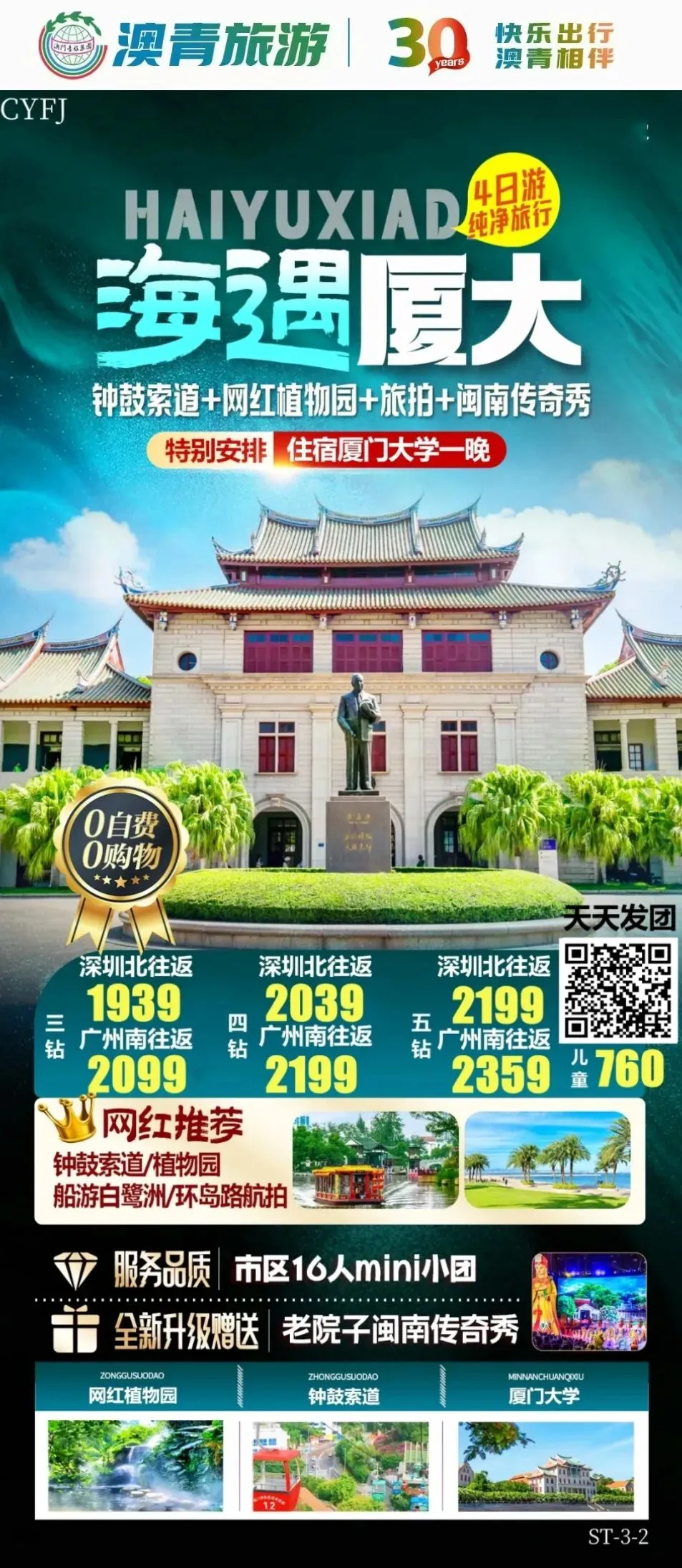 厦大宿屿 纯玩体验4日游 16人尊贵小团 0购物