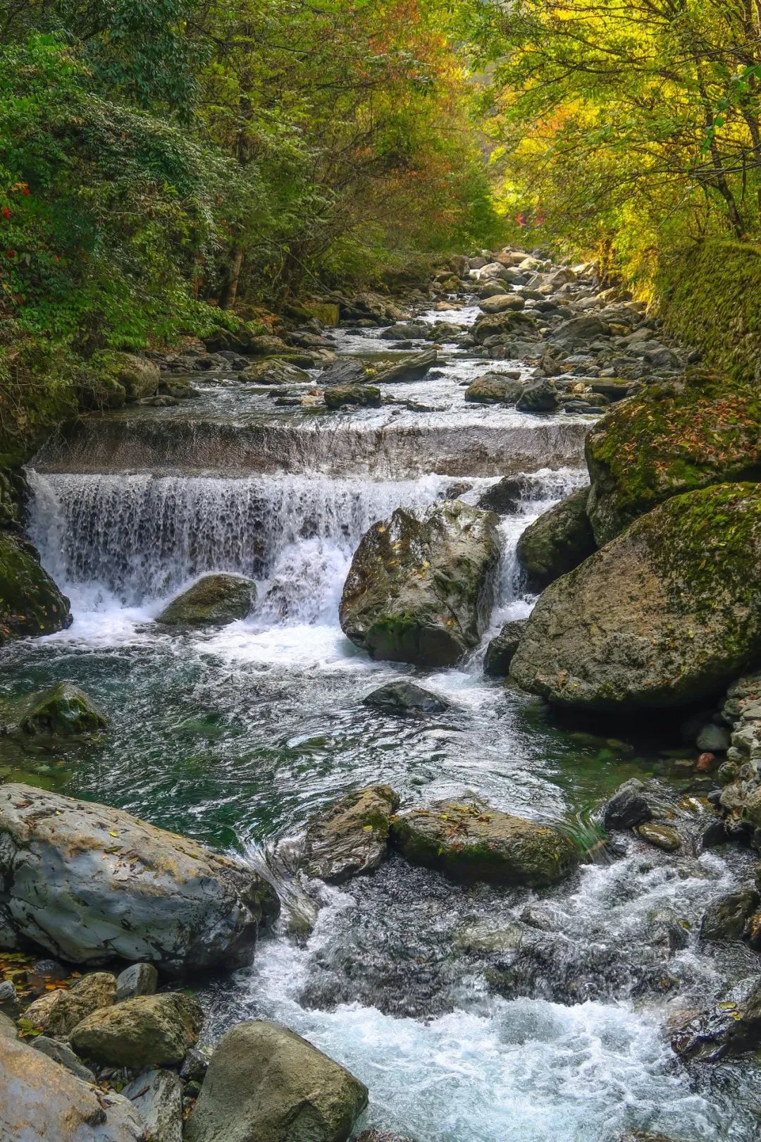 秋天的时候这里的森林五彩斑斓,变色的枫树、鹅掌楸、连香树、海棠、核桃和板栗树,混杂在常绿植被之中,就像油画家不小心打翻了颜料罐