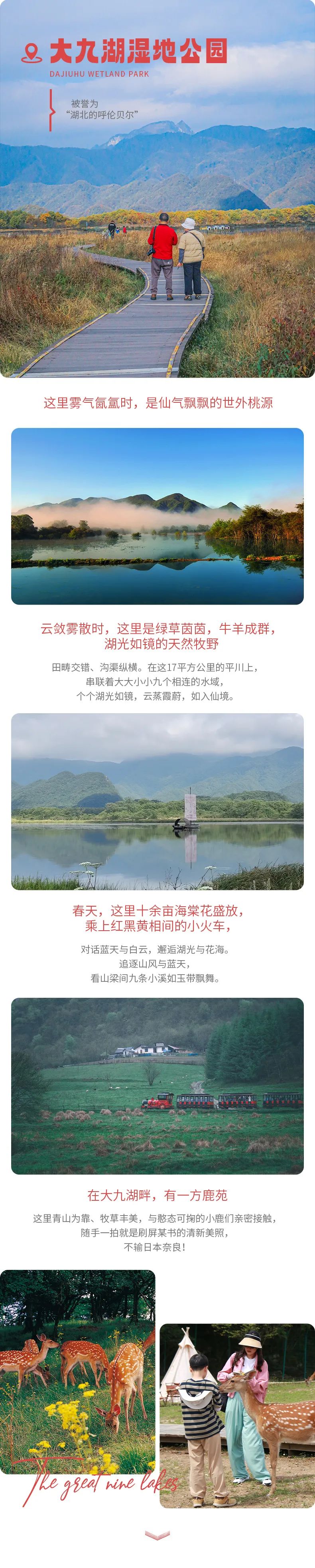 乘车前往【大九湖】(车程40min)去看大九湖的晨雾。有一句话说“如果你没看到大九湖的晨雾,那你就不算到过神农架”。大九湖被称作是华中的呼伦贝尔,藏在深山中的一片高山草甸,弯曲的溪流在九座山梁间汇集成了大大小小的九个湖泊。大九湖是原生态的美,早晨在云雾笼罩下,成群的牛羊沐浴着洒下的阳光,整个画面祥和的如一片世外桃源。