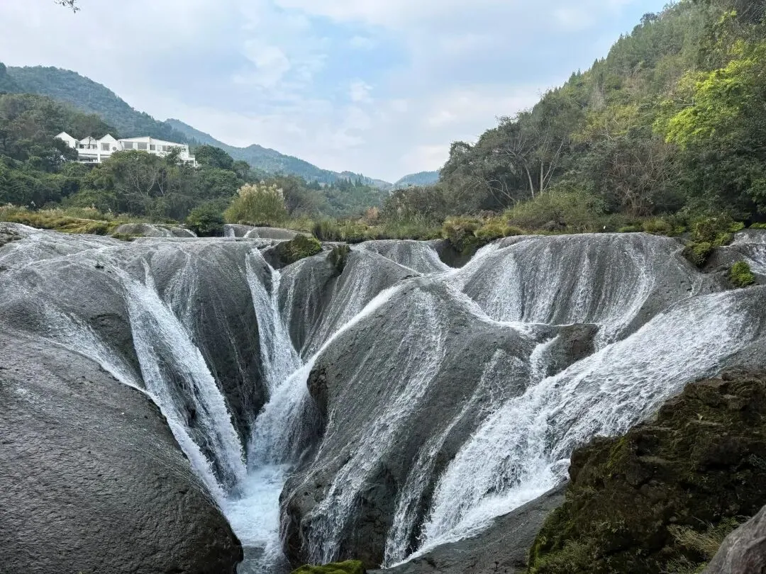下半程依旧是游山玩水的快乐,一路能看到各种小型瀑布,中途会路过一个溶洞,里面有点闷,快速逛一圈就好。走了好久终于到银链坠崖,看到的瞬间直接惊呼!水流像银链一样层层叠叠坠下,美到失语!