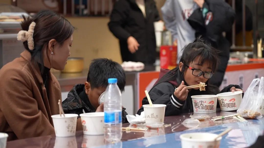 陈先生一家六口自驾从湖南远道而来。湖南有不少沙县小吃店,春节假期,他们特意来到俞邦村感受“小吃源乡”的地道风味。