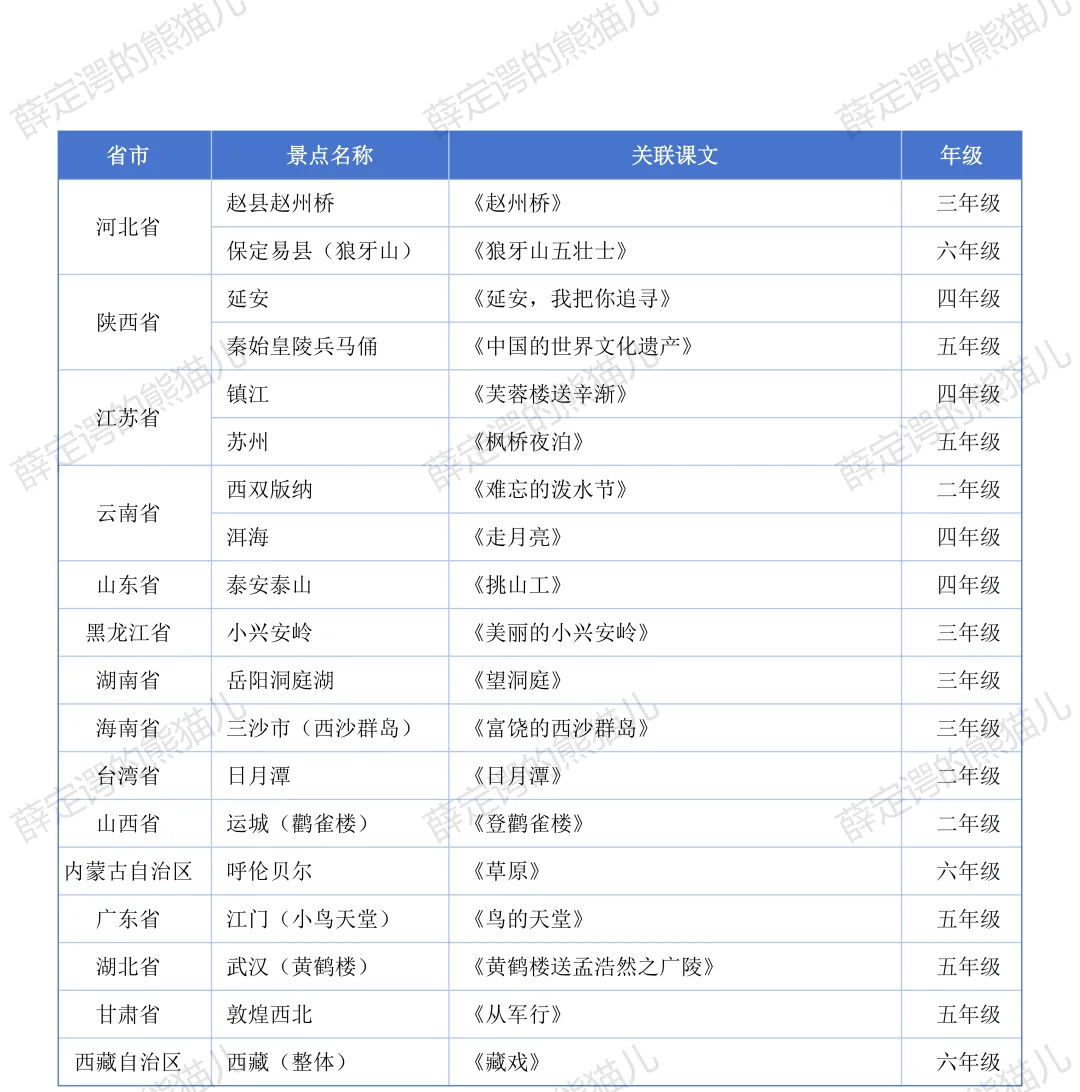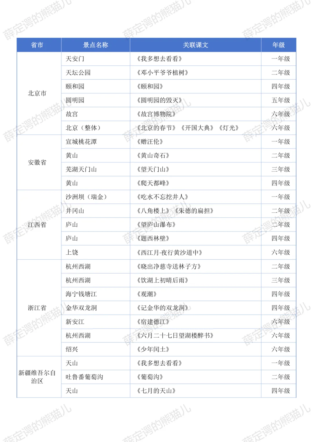 “跟着课本去旅行”!附人教版1-6年级景点清单