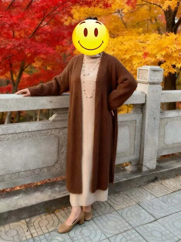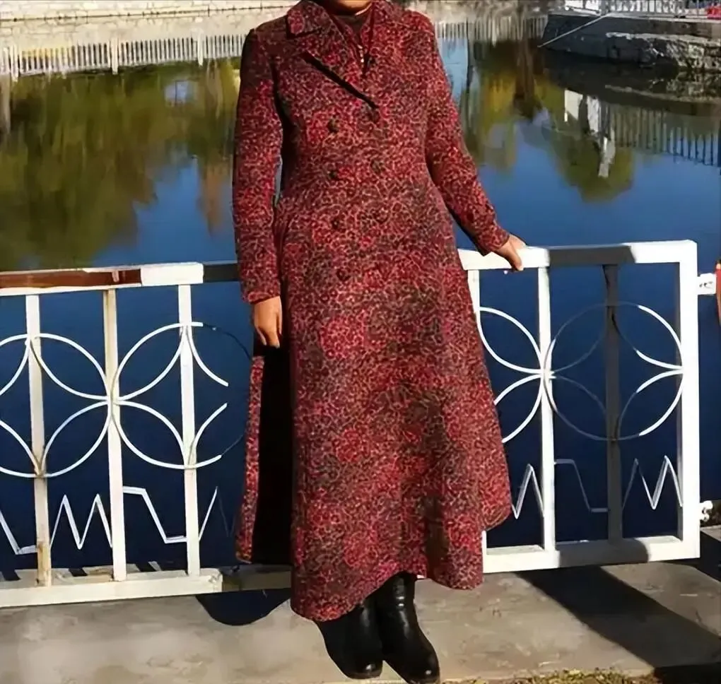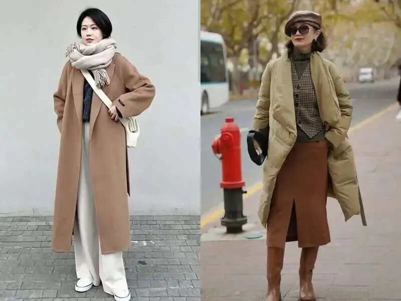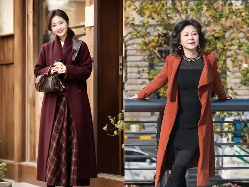 羊毛呢长大衣配一条修身针织长裙,层次干净,人会显得柔和,站在树林边,站在古建筑前,画面有一种顺眼的安静感。