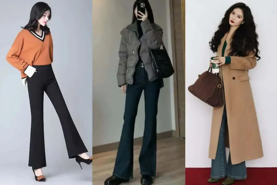 微胖身材更可以试试加绒微喇裤,上紧下松,腰胯和大腿更好藏,裤脚一放开,小腿线条顺很多,整个人也不压个子。
