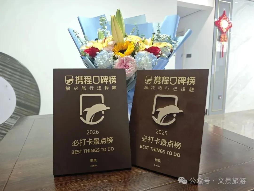 连续两年登榜,是万千游客用脚步投出的信任票。我们在携程平台收获的每一条真实好评,都是对鹅泉山水诗篇与沉浸体验最动人的注解。
