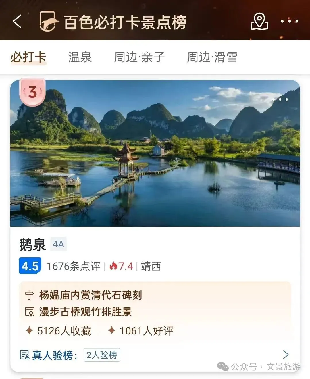 会员动态|喜报速递——靖西市鹅泉景区连续两年荣登携程“必打卡榜”!