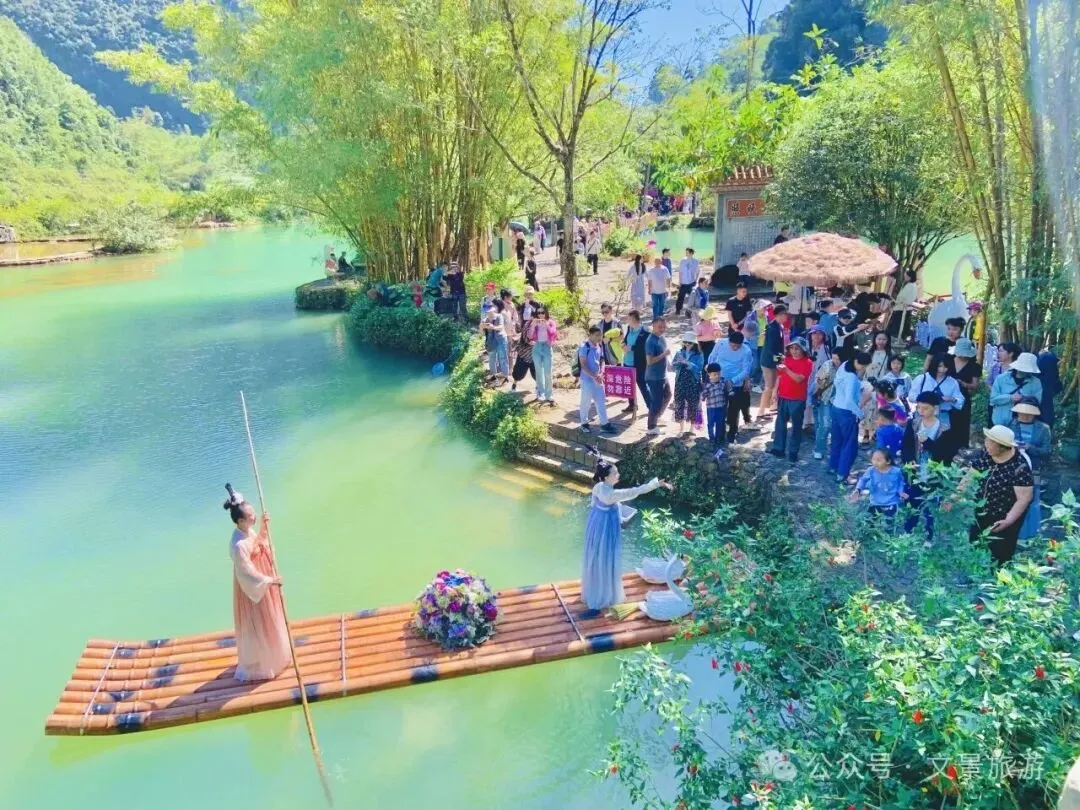 还结合鹅泉“鹅仙报恩”这一美丽传说,推出“鹅仙花船巡游”实景演艺项目,当鹅泉传说遇见碧波清泉,花船缓缓划开的不仅是涟漪,更是壮族孝道文化穿越时光的深情回响。