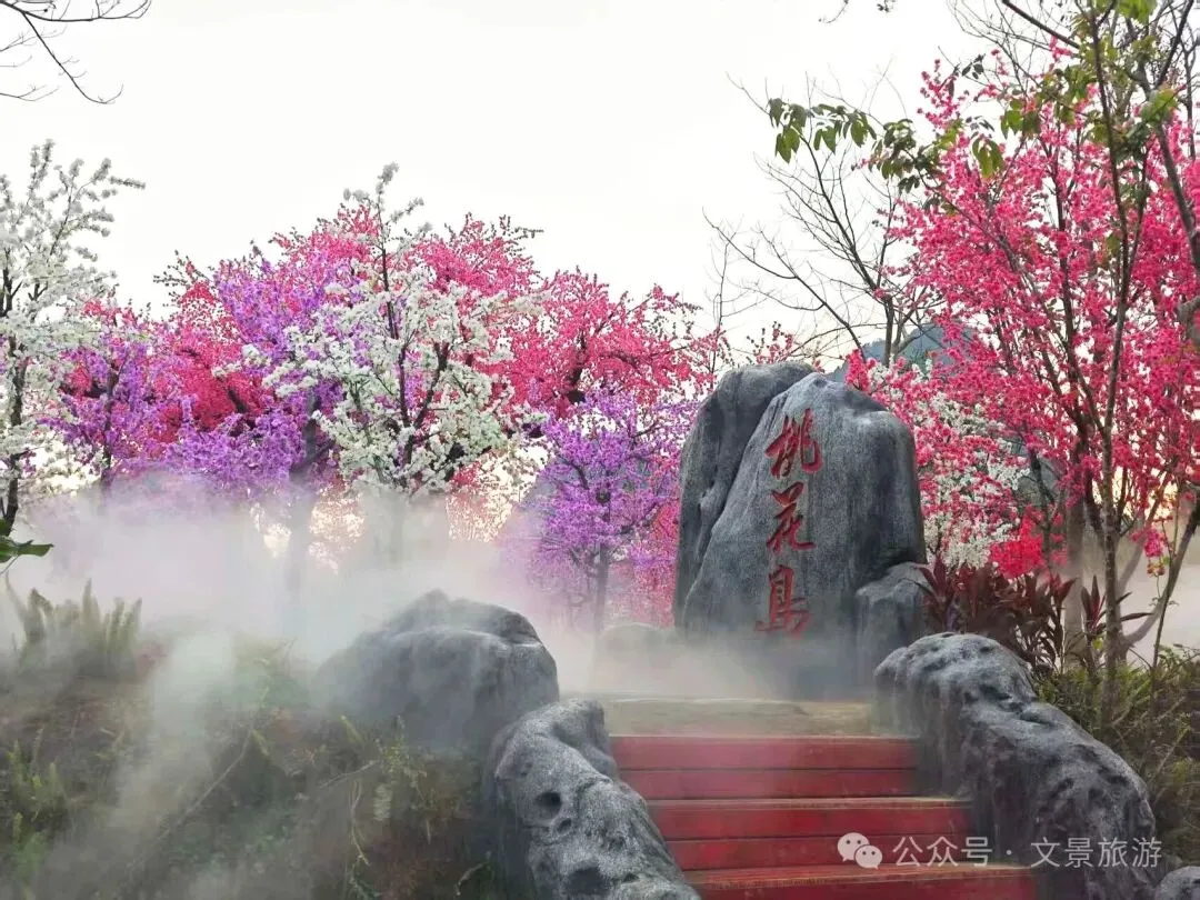 如今,鹅泉巧妙借自然之笔,在山水画卷间新添了一抹柔情——桃花岛。粉云般的花枝依偎着碧水,为这幅青绿山水染上了如梦的绯色;
