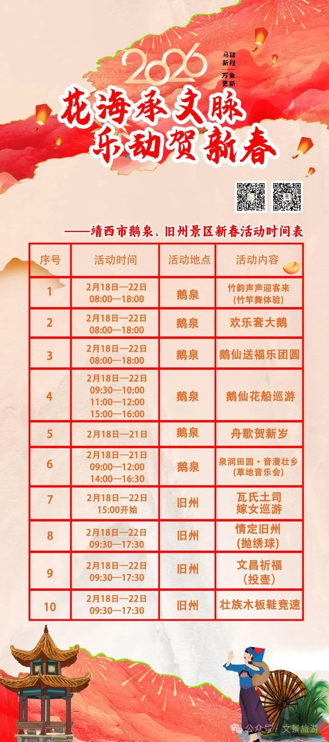 恰逢丙午新春,值此双喜临门之际,鹅泉、旧州景区特别推出新春主题活动,让传统年味在山水间焕发新意~