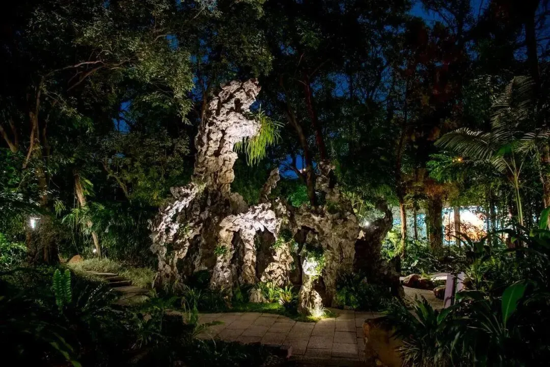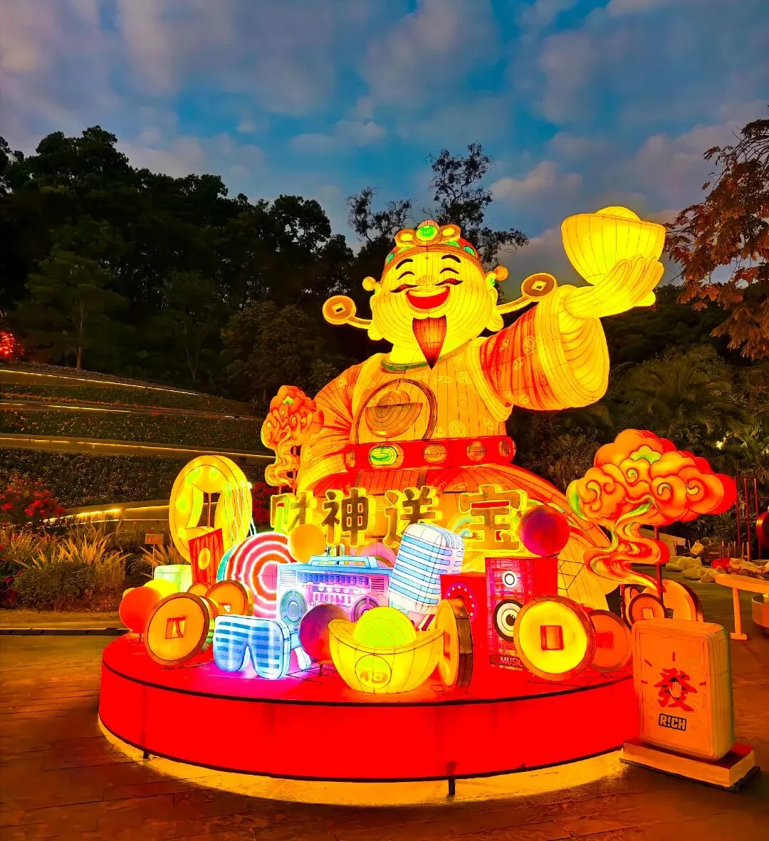 15组大型主题新春花灯沿溪流水岸、林间空地错落布局,将自然野趣与现代光影艺术精妙融合,呈现出粤港澳大湾区独一无二的“灯影花境”沉浸式夜游盛宴。夜幕降临,华灯初上,灵动花灯与园内标志性景观木棉道、木棉台交相辉映,光影流转间勾勒出岭南山地的独特轮廓。