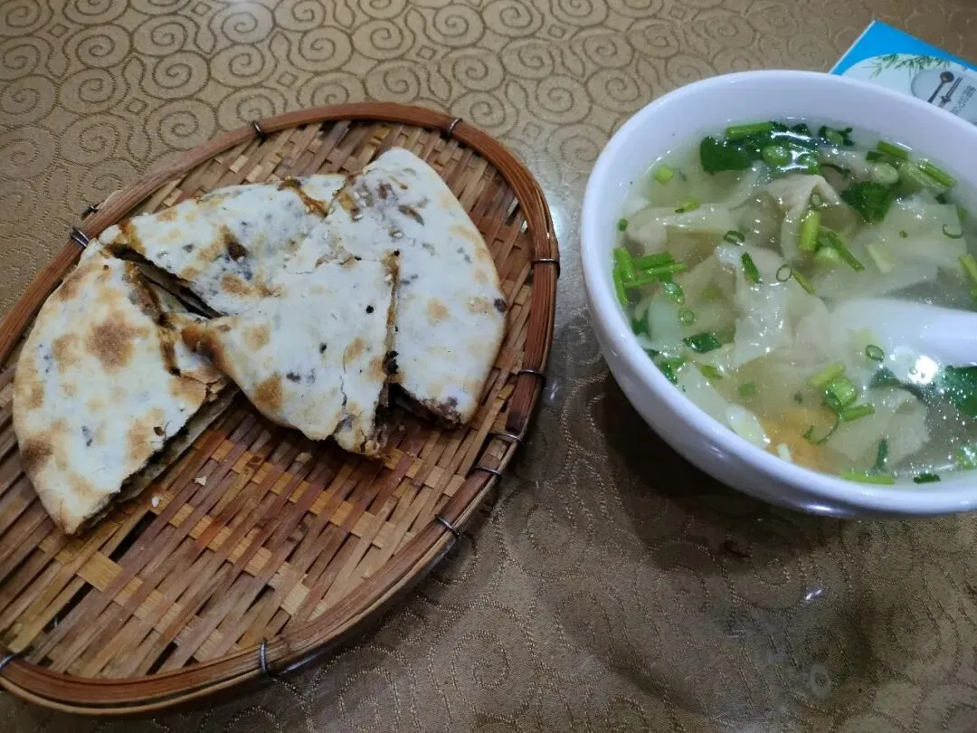 青田最正宗的麦饼在酒店,皮薄肉馅厚。