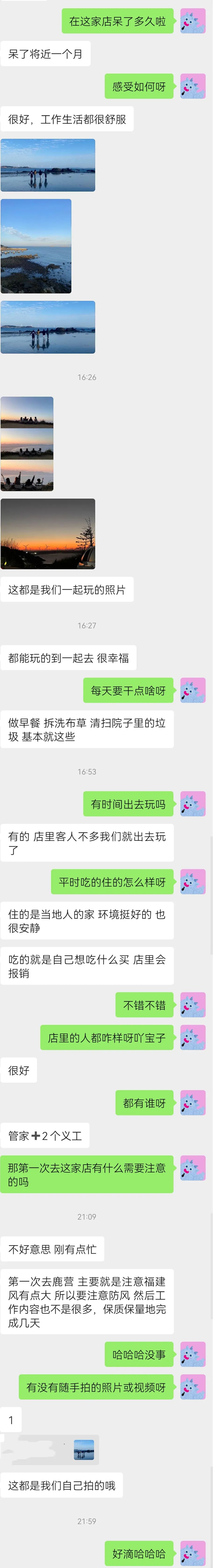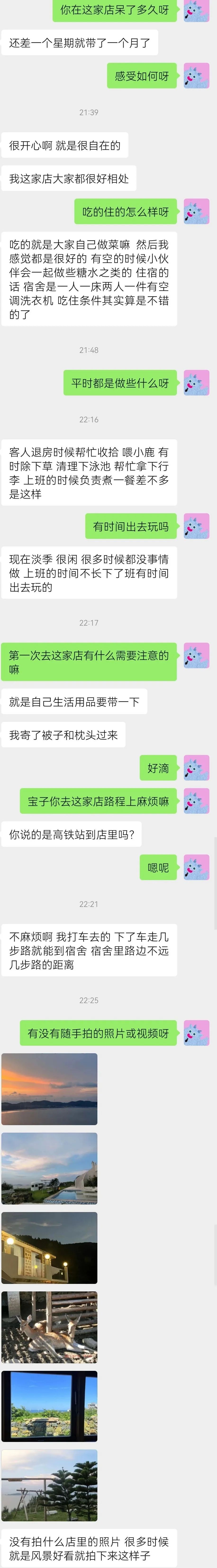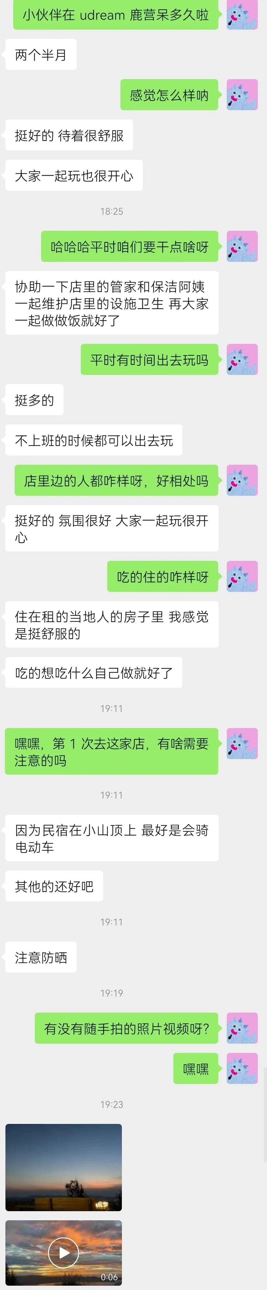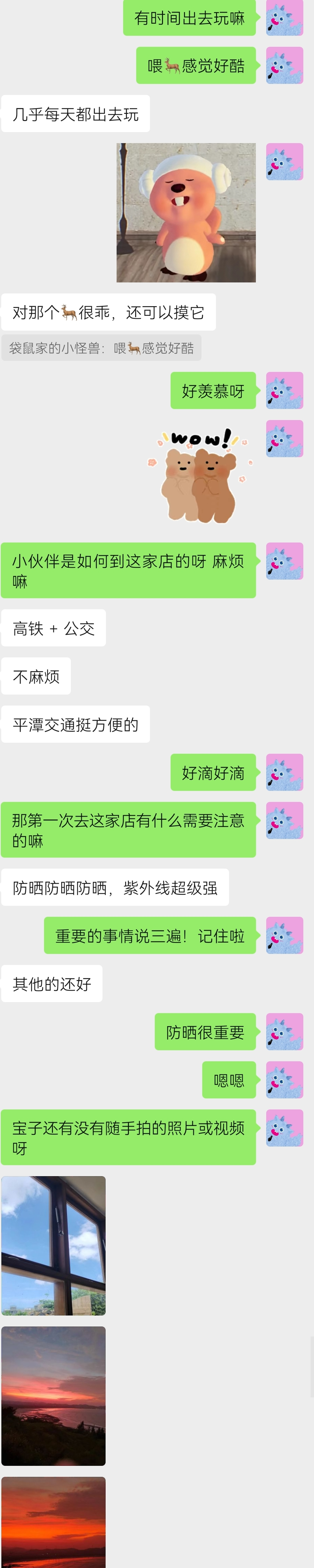 也强烈建议大家和民宿老板能有一个视频聊天的过程。聊聊去要准备什么东西啥的都可以,尤其是问住宿和工作有无变化,因为推文时效性不高,可能店会因为人员变动啥的有所变化,袋鼠也跟店家说要提前讲清楚,但是大家多问问总没坏处的。