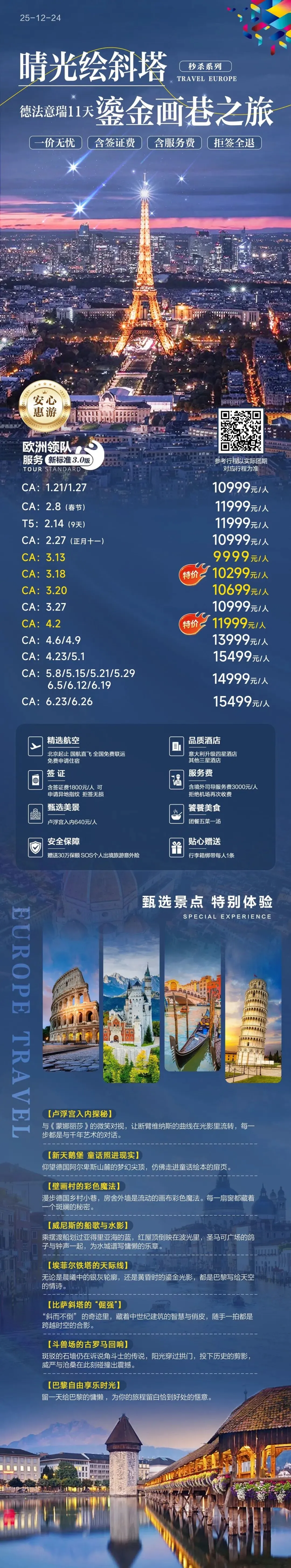 您现在的位置是:首页 > 国内旅游目的推荐 > 正文 国内旅游目的推荐 【西欧旅游】产品+价格—北京出发 admin2026年02月09日 12:00:27国内旅游目的推荐8 【西欧旅游】产品+价格—北京出发 转载请说明来源于"旅荐网",部分内容转载自网络,如有侵权请联系qlwl@foxmail.com删除 本文地址:https://www.15386.cn/post/98540.html 上一篇 旅游学院的留守儿童咪 下一篇 陕西旅游烹饪职业学院2026年高职分类考试招生章程 相关文章 用AI做旅行攻略,10分钟搞定,再也不用熬大夜翻笔记 3月,全国免门票景区汇总!附游玩攻略! 【2026新西兰旅行时间表】!保姆级攻略抄作业!! 日本自由行攻略「基础+避坑」版 错过等一年!五一秦皇岛最全游玩攻略,本地人私藏路线大公开 旅游策划的创新方法:让传统目的地焕发新活力 #贵港小平天 #徒步旅行攻略 #登山爱好者聚 麻城“中国第一将军乡”旅游发展方案来了,将建设迎宾楼,引进山地车、小游船等 荷兰��旅游地图|景点分布+交通攻略 汕头旅游美食攻略,关于我在汕头两天吃了16顿上篇(附不踩雷) 发表评论 取消回复 评论列表 这篇文章还没有收到评论,赶紧来抢沙发吧~