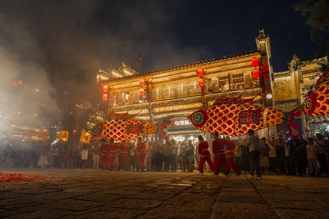 江湾的非遗巡演热闹非凡,舞龙、傩舞、徽剧轮番上演。