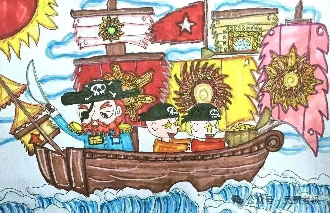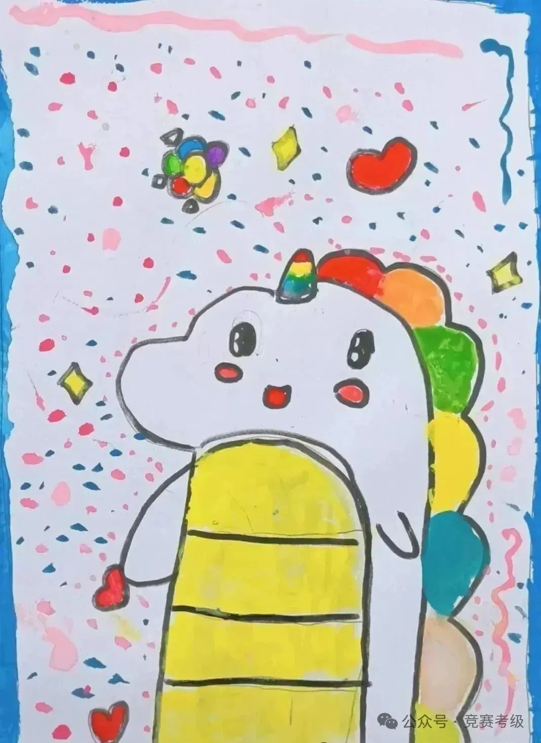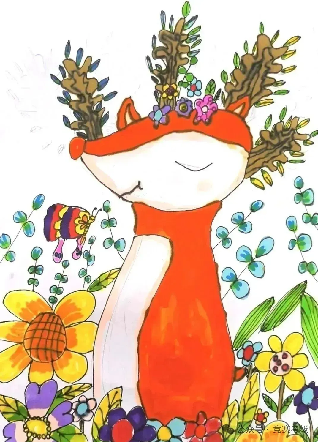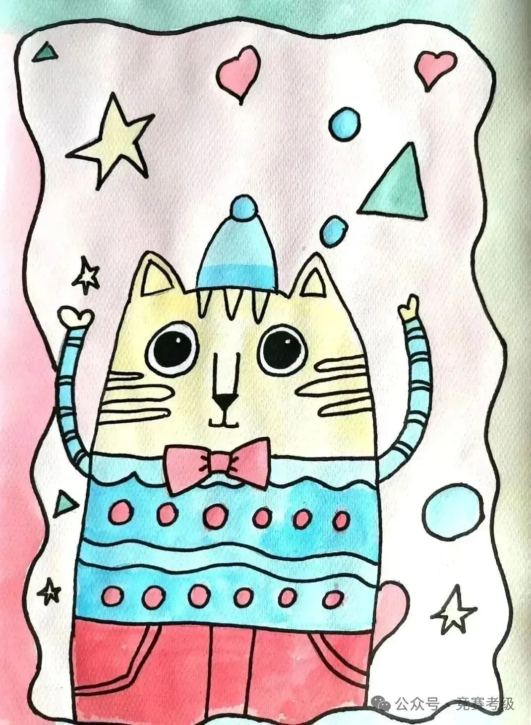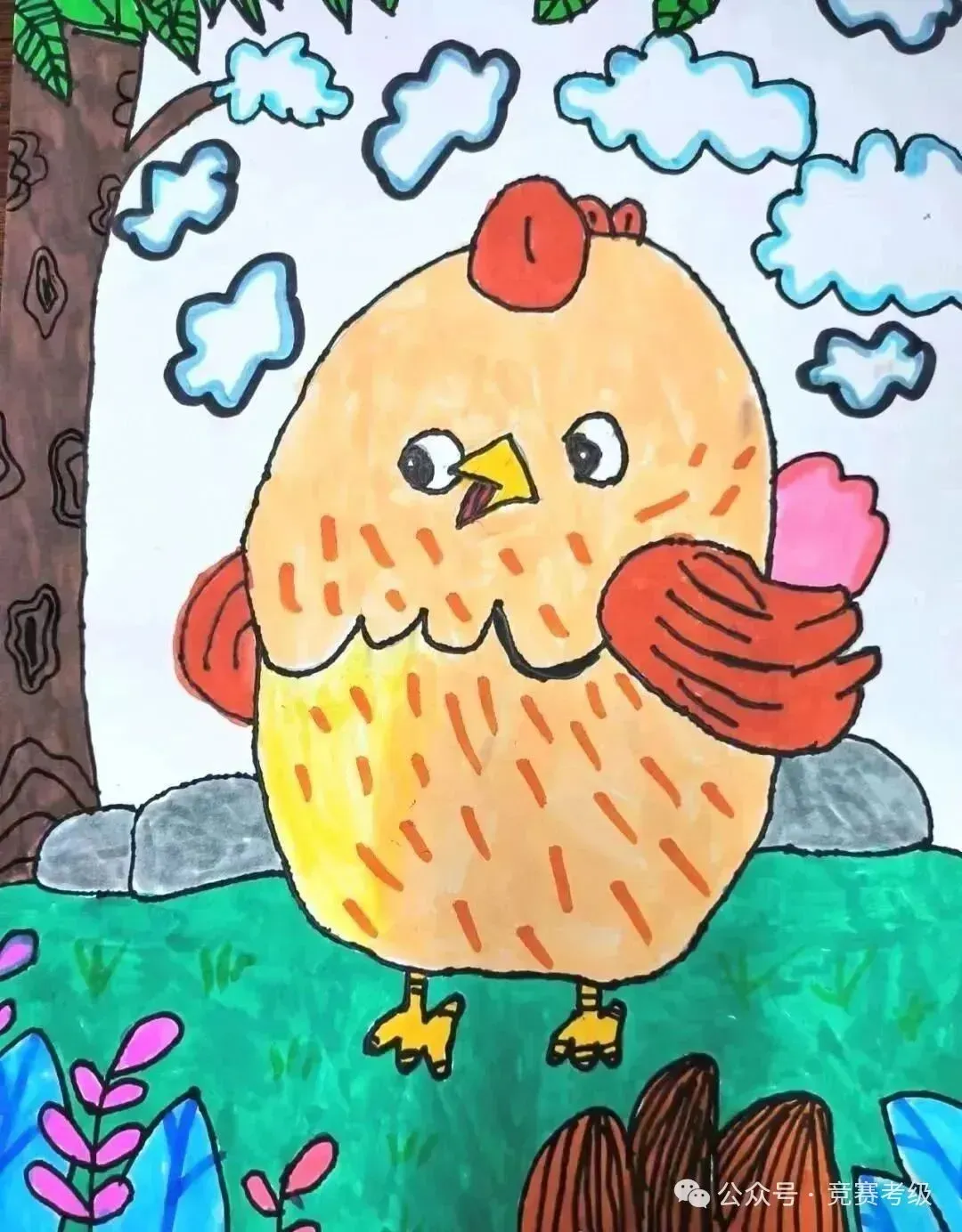 2 级:能运用线条、色彩等元素描绘出具体的形象,形态和构图基本合理,富有童趣。