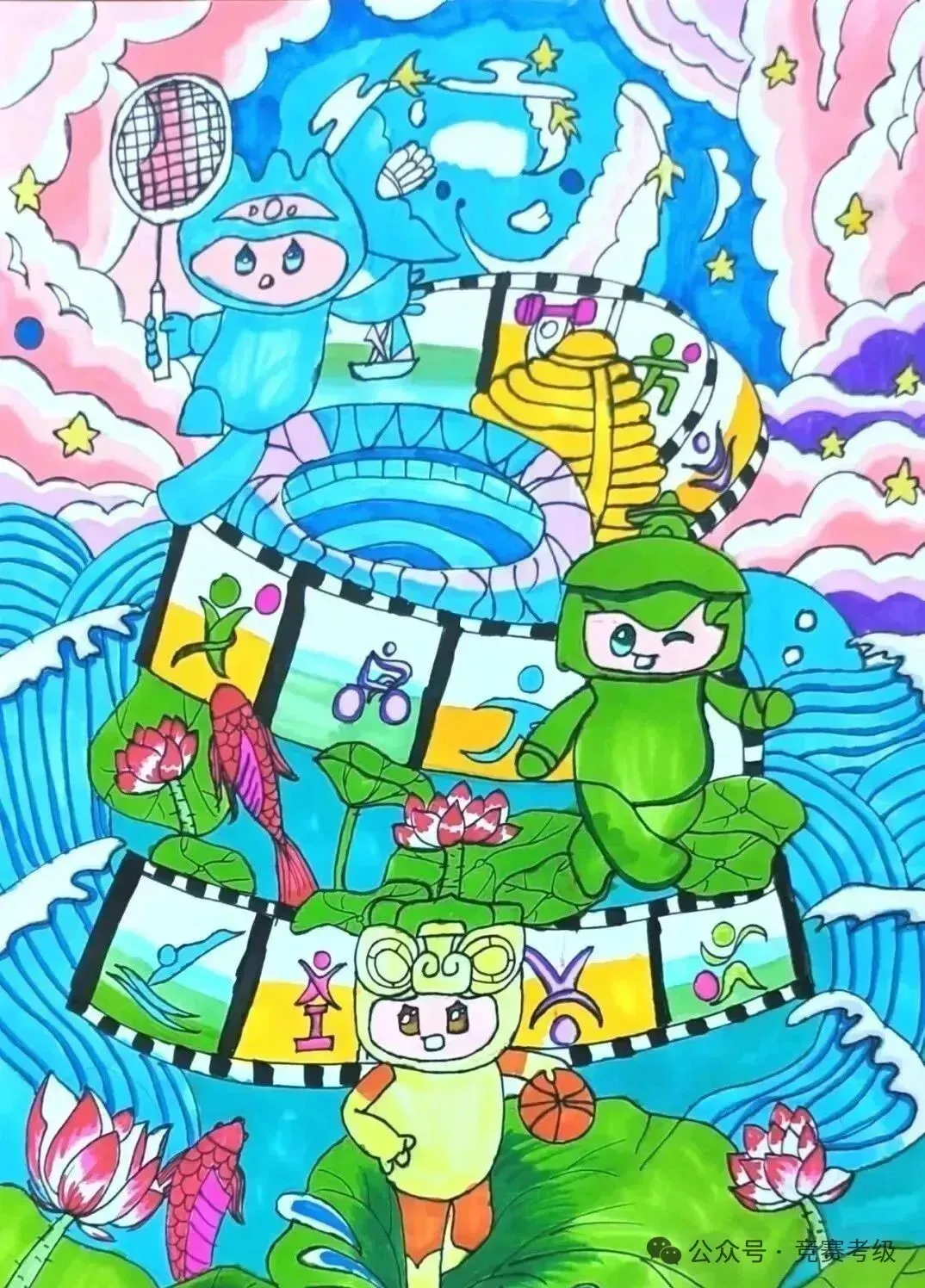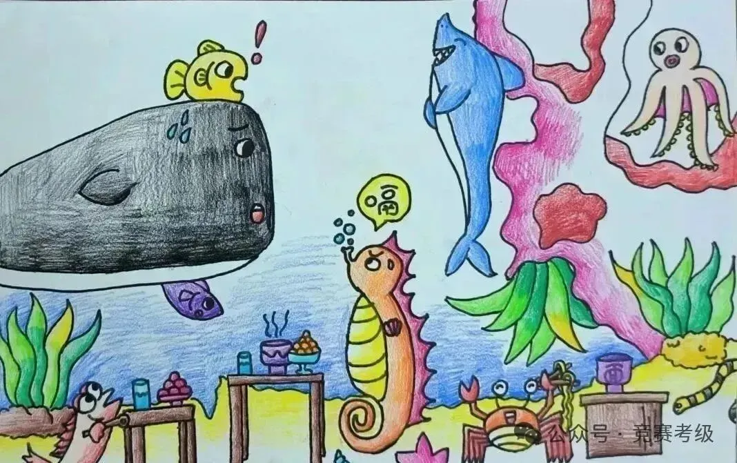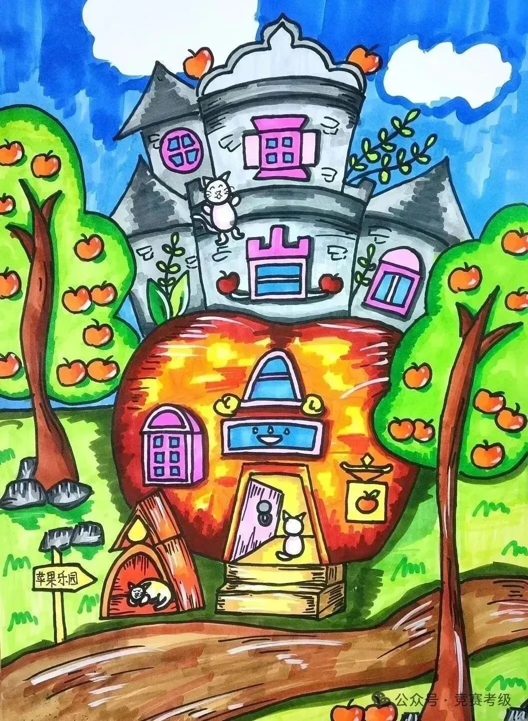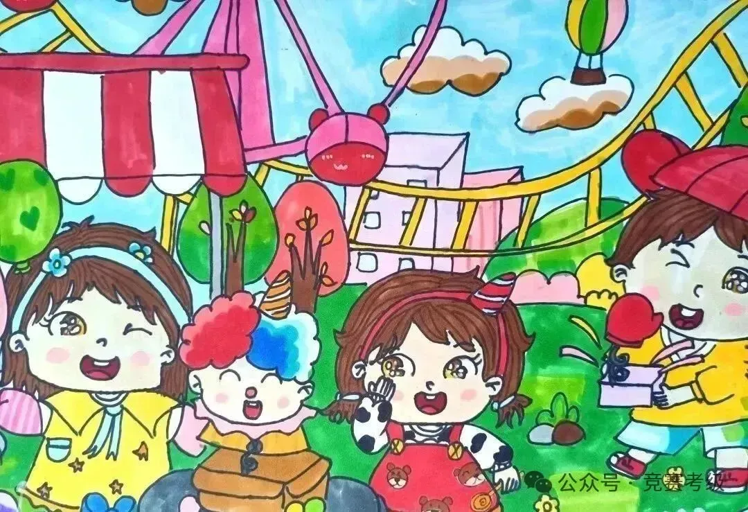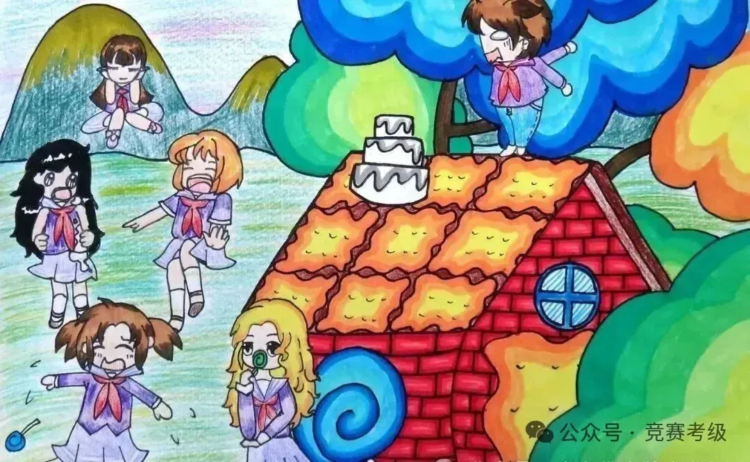 10 级:能熟练使用绘画材料及技巧,运用熟练的绘画语言表现画面;主题鲜明有创意,内容丰富、构思新颖、巧妙;造型生动有想象力,构图饱满、画面完整协调;色彩丰富,冷暖关系协调,具有独特的美感以及生活和时代气息。