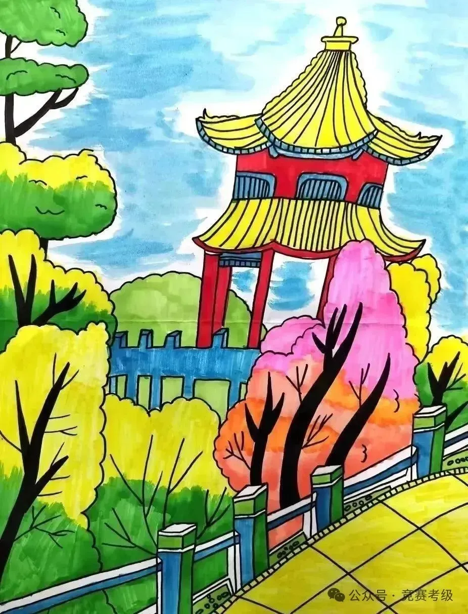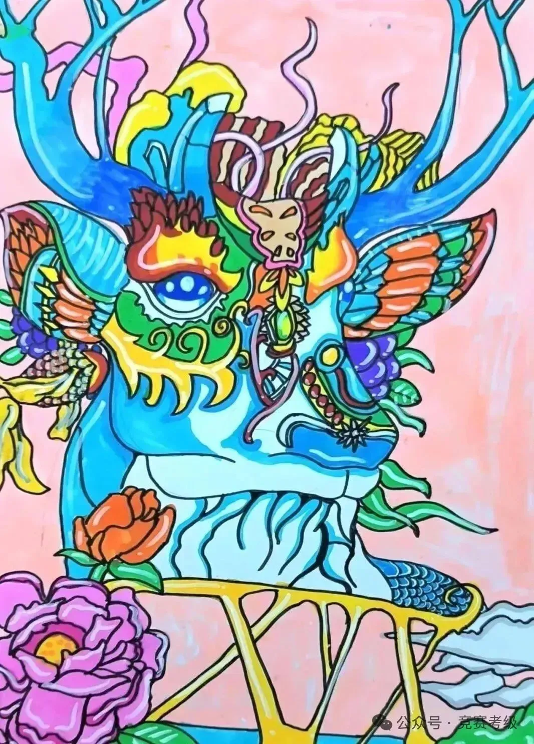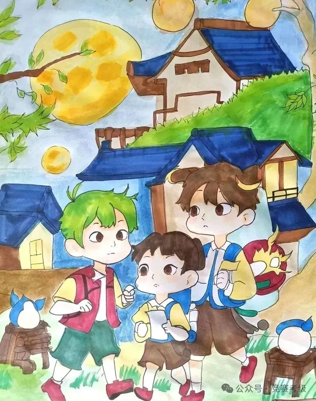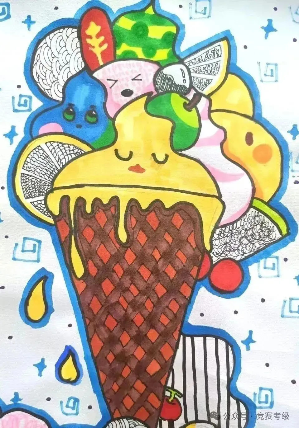 10 级:能熟练使用绘画材料及技巧,运用熟练的绘画语言表现画面;主题鲜明有创意,内容丰富、构思新颖、巧妙;造型生动有想象力,构图饱满、画面完整协调;色彩丰富,冷暖关系协调,具有独特的美感以及生活和时代气息。