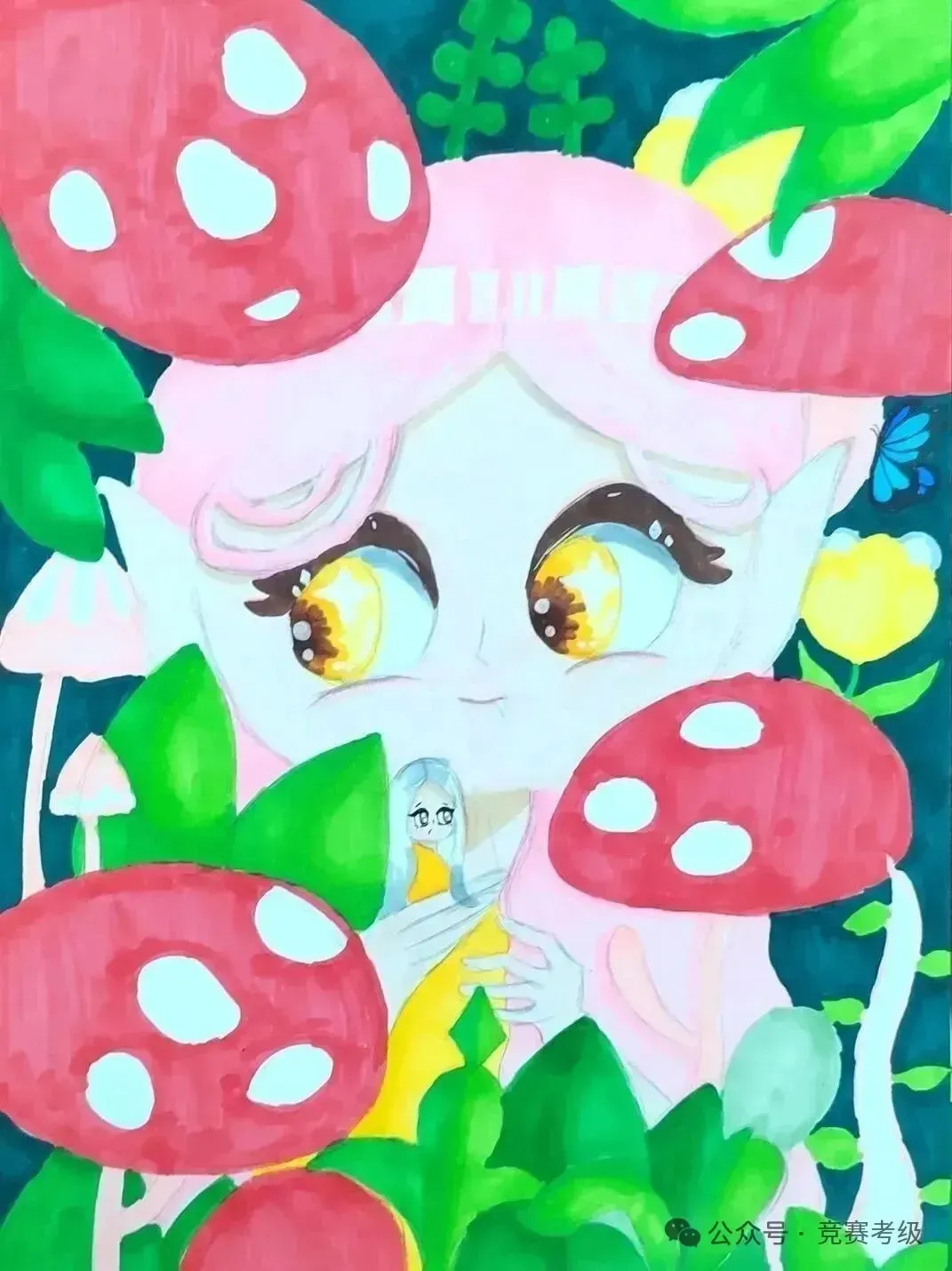9 级:能熟练使用绘画材料及技巧,主题鲜明有创意;内容丰富、构思新颖;造型生动有想象力,作品构图合理、画面完整;色彩丰富协调,具有独特的美感以及生活和时代气息。