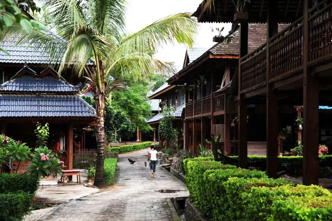 推荐点位:传统干栏式建筑群、慢轮制陶、千年菩提树、边境田园风光