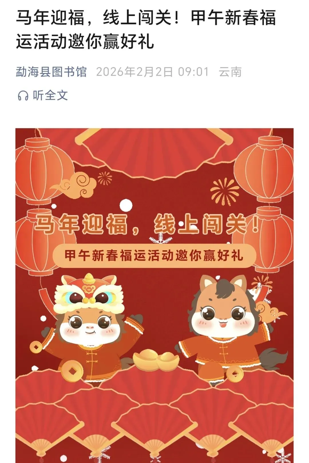 内容:马年迎福,线上闯关!《策马奔腾迎新春,扬帆起航启新程——新春线上活动》