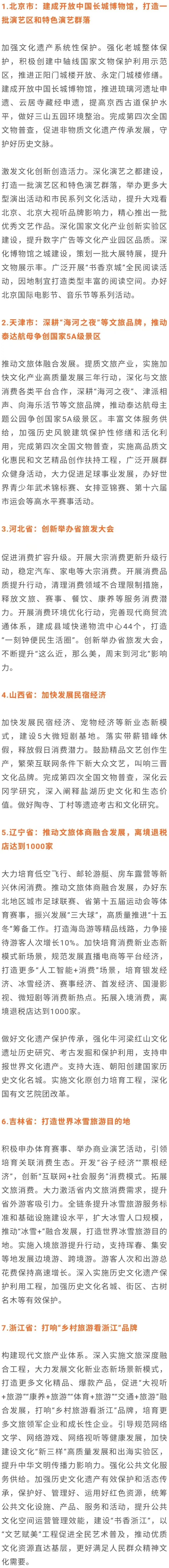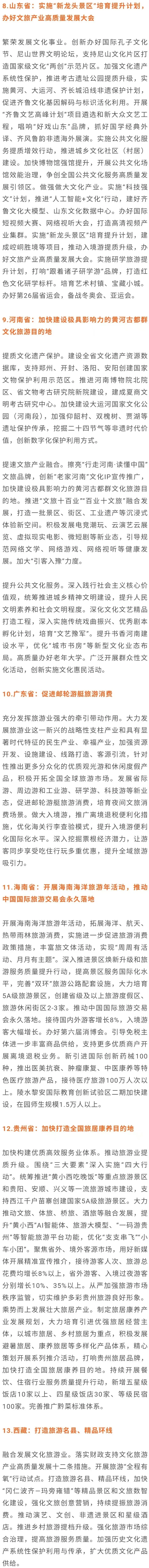 现将各省市(含自治区)2026年工作报告中涉及旅游工作重点安排整理如下。