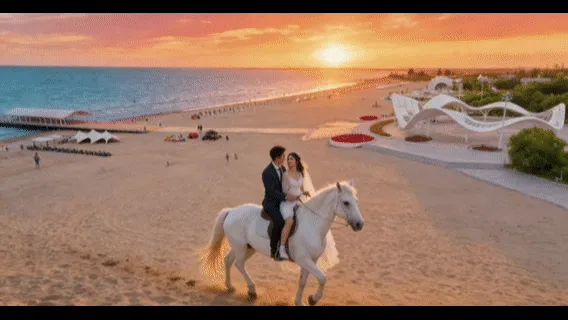 2000米金沙滩铺就浪漫红毯,纯白骏马搭配绝美落日,复刻童话级告白场景。188元情人节特惠大床房,尊享专属浪漫布置与次日双人早餐;白马骑行打卡、夕阳告白仪式、沙滩爱情留影,全方位打造专属二人的甜蜜记忆。