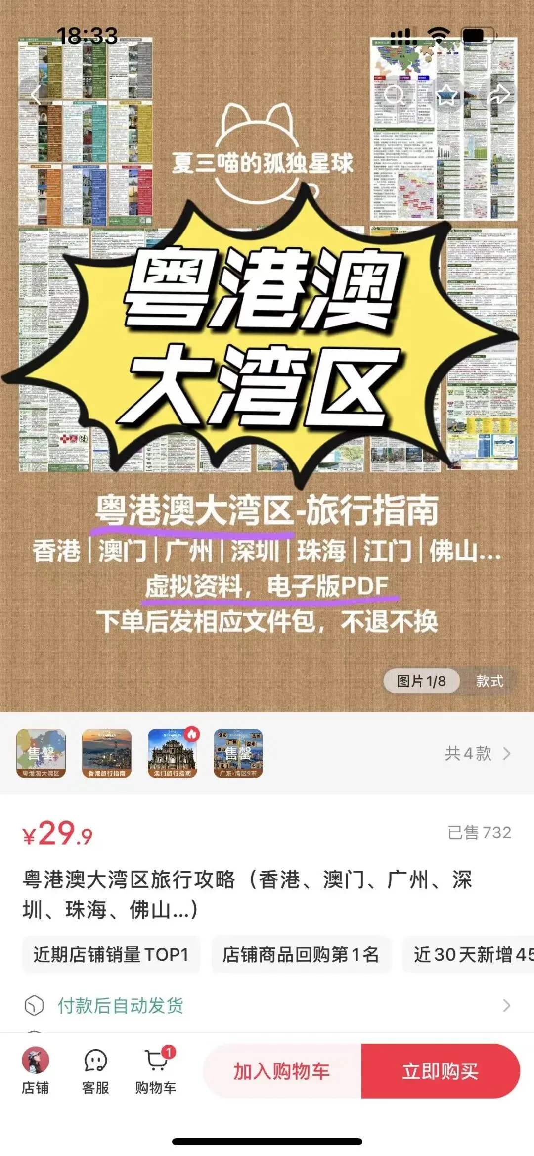 更有意思的是,像「大湾区旅行攻略」这种谈不上复杂的旅游路线,很多人都觉得用不上攻略,结果相关的小红书店铺里,29.9元的「大湾区旅行攻略」都能卖到700+。