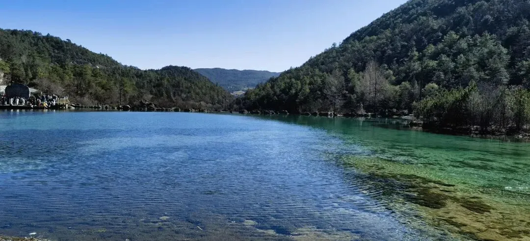 最漂亮的就是蓝月谷了。山上是皑皑雪山,山下是如镜般透亮的湖水,湖底清晰可见。最奇特的湖水的颜色,有的地方呈现碧绿或者浅蓝色,有的地方是深蓝色的,像童话中的神仙世界。让你感觉不现实。谷底拍照特别好看,白茫茫的雪山映照在浅蓝的湖水中,相映成趣,越看越觉得这不就是美丽的童话世界吗?