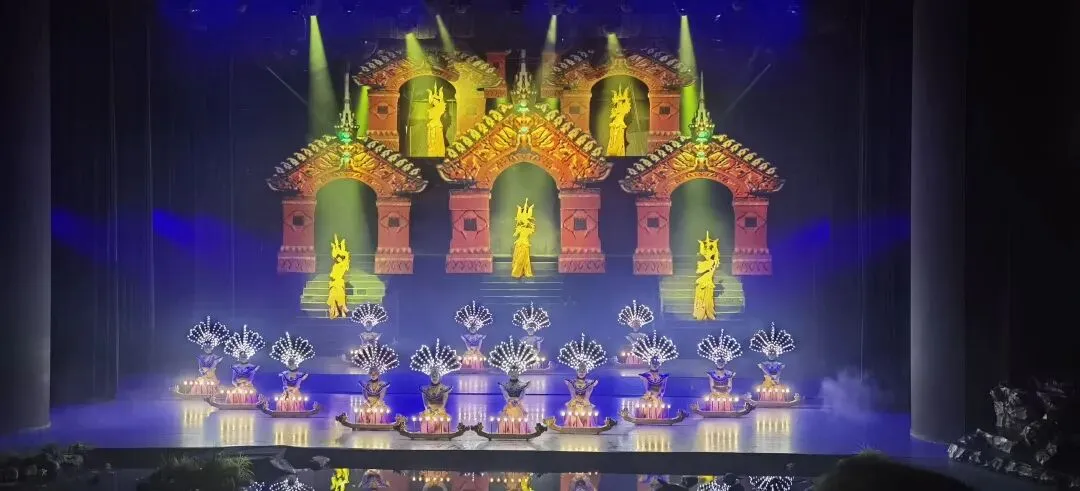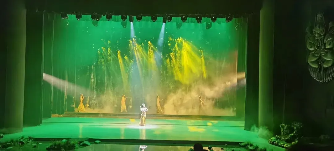 这是丽江民族风情歌舞晚会,舞台布置很精美,艺术化地展示云南各民族的文化、服饰、音乐和舞蹈。涵盖纳西族、傣族、白族、藏族、彝族等多个民族片段。通过这个演出,我们也了解了各个民族的服装服饰和舞蹈。