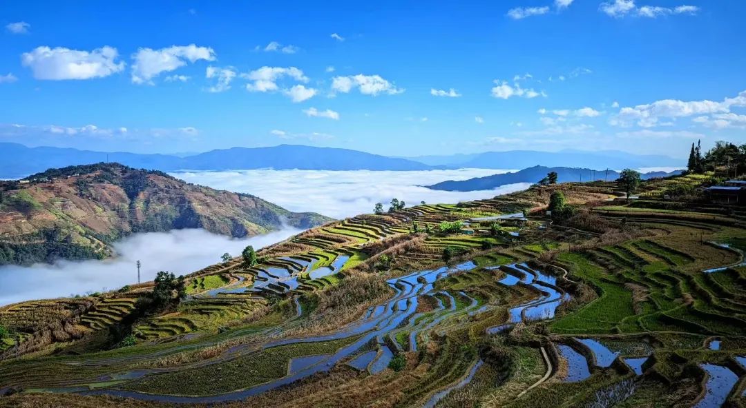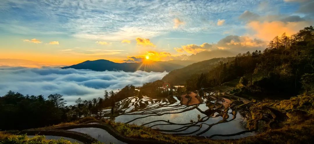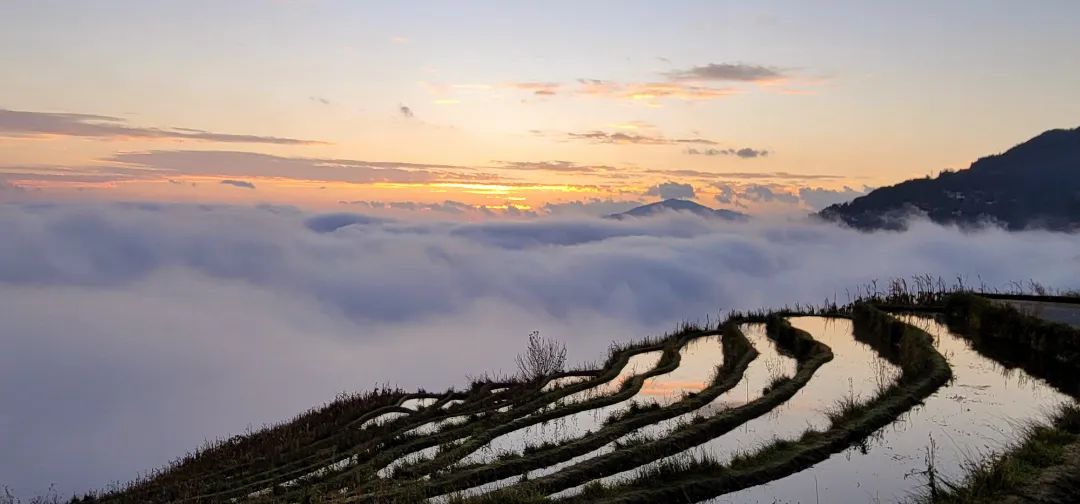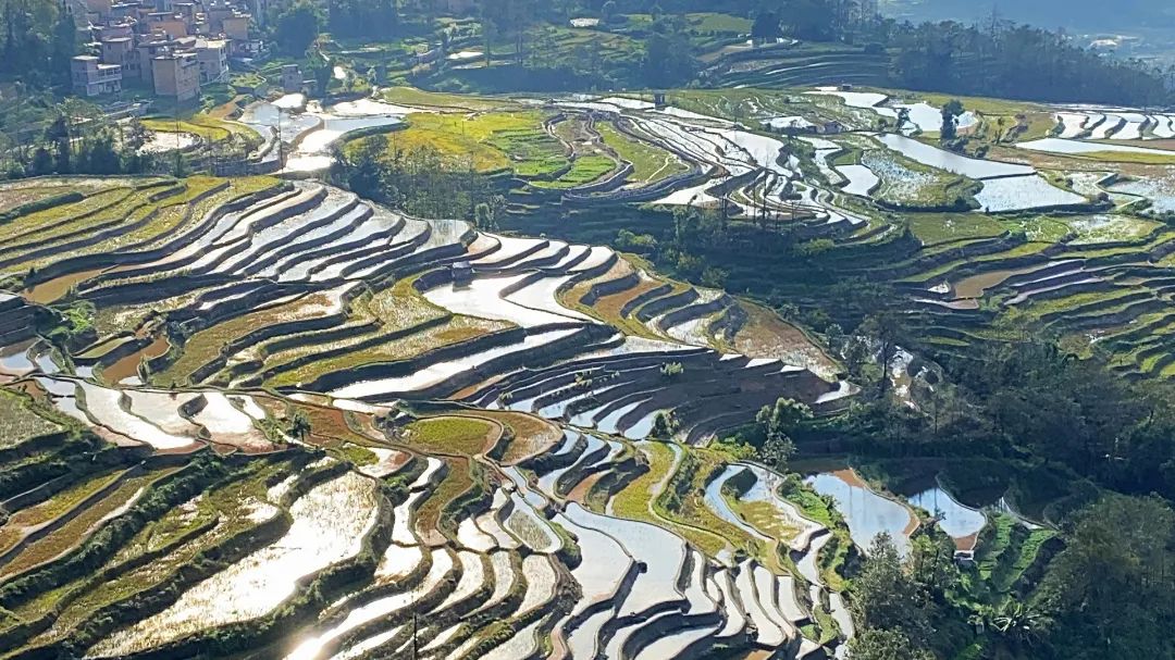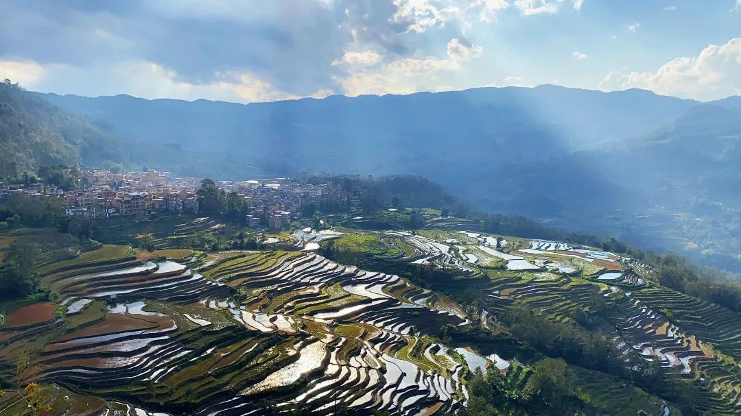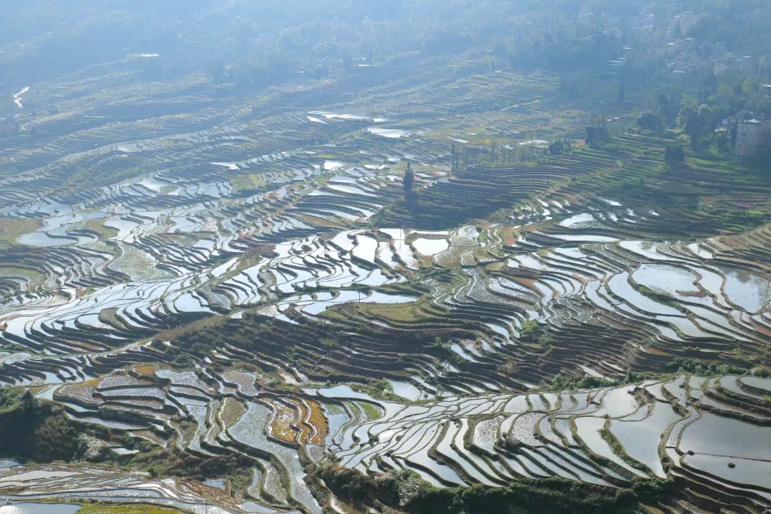 此时的哈尼梯田波光粼粼