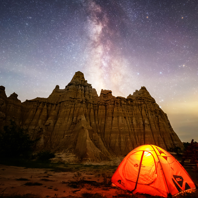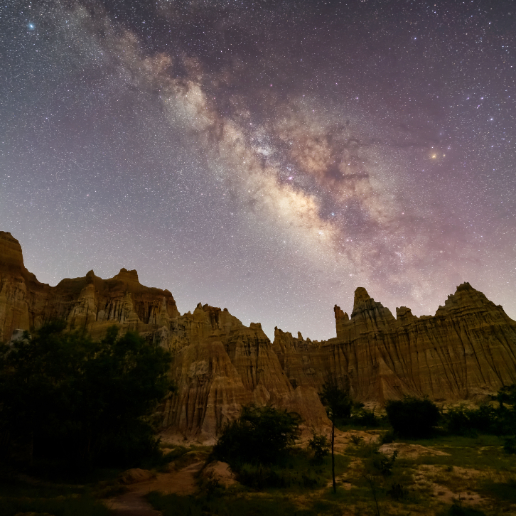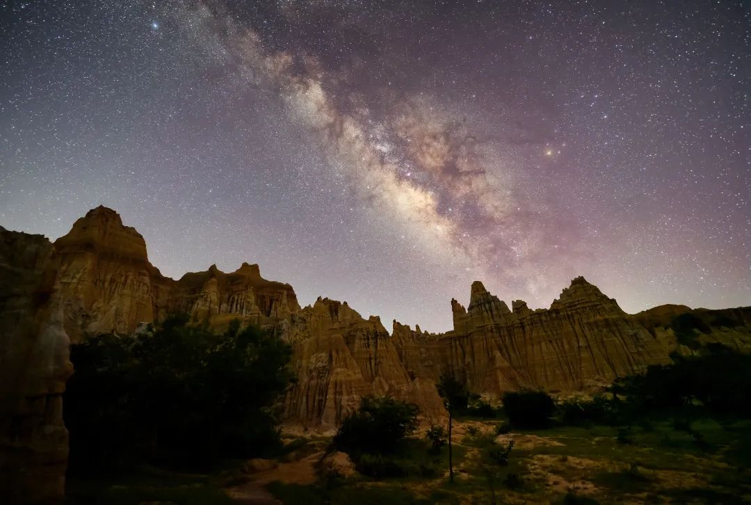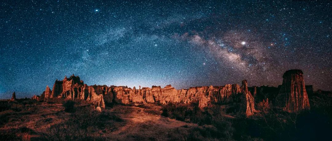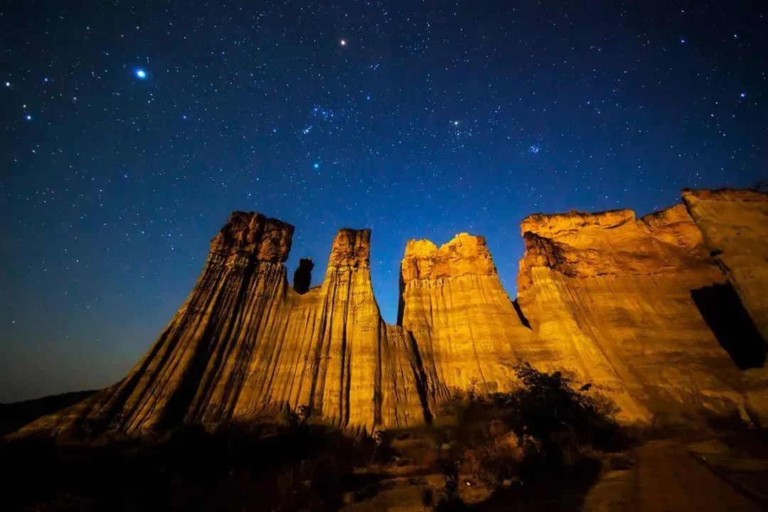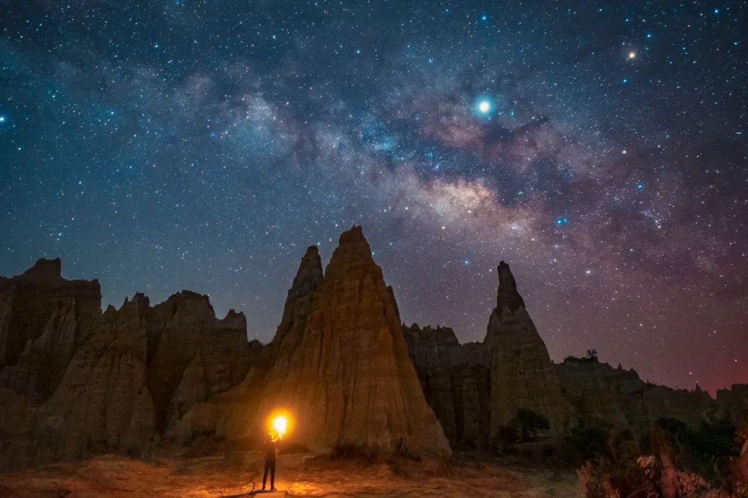 漫天的繁星与形状独特的土柱