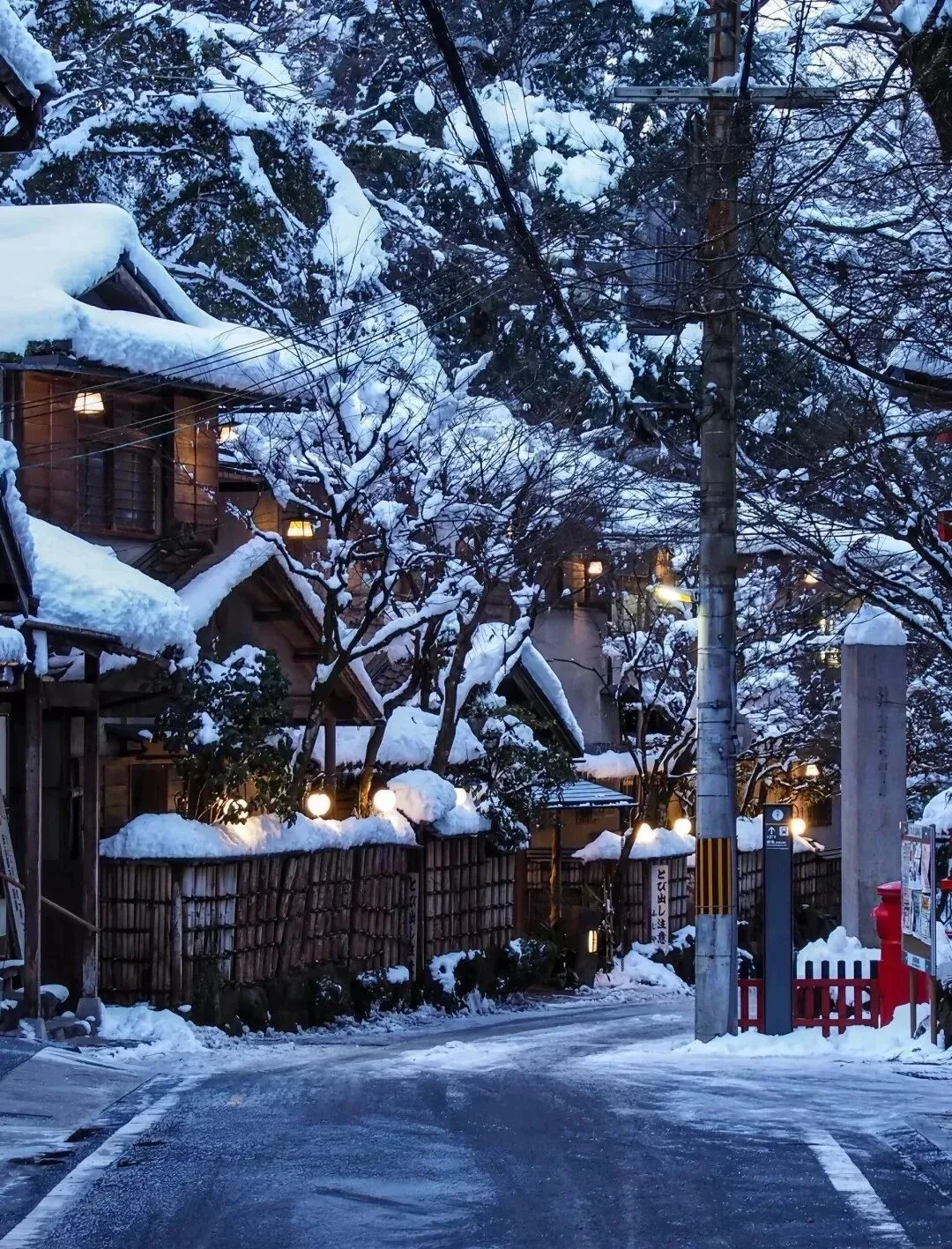 被雪覆盖的贵船富士屋🏮在充满日本氛围的景色里拍照