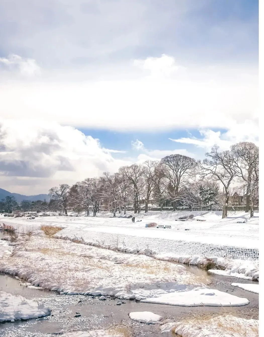 🎁雪后的鸭川在明媚的阳光下,仿佛对比强烈,浓墨挥洒的油画,连干枯树木的影子都有了些浪漫的味道。