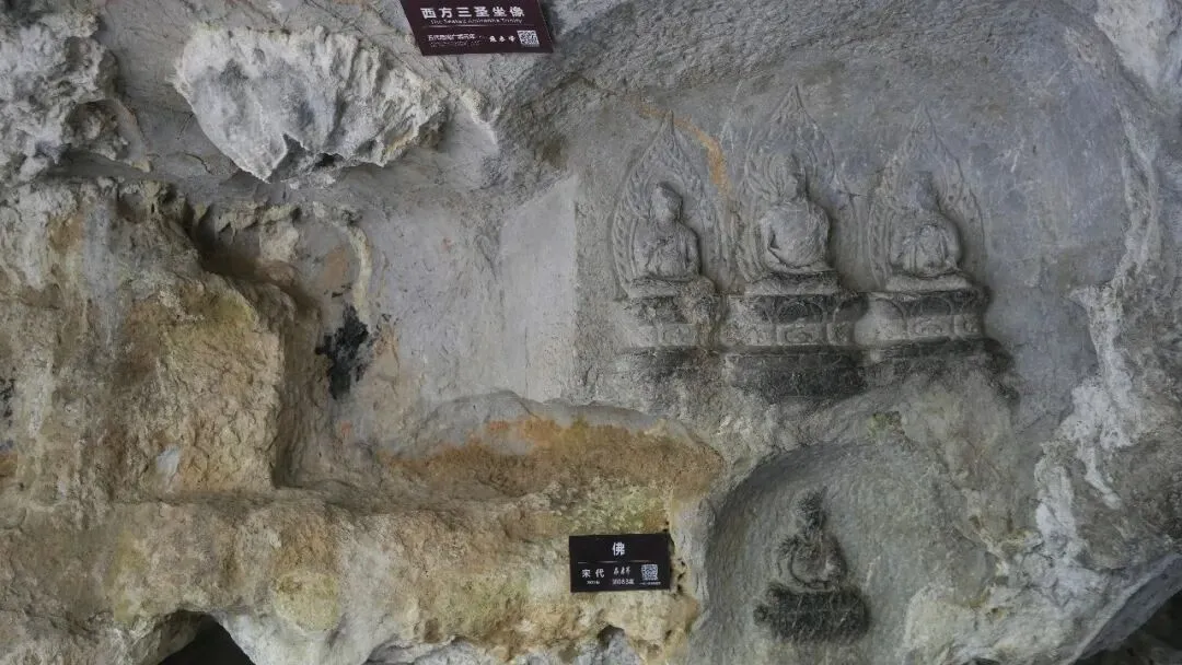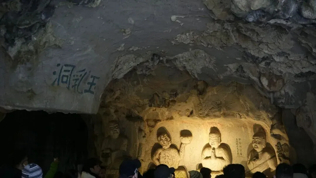 接着就来到了玉乳洞,也称蝙蝠洞,是因为之前这里倒挂着很多的蝙蝠,但是现在看不到了,我心里还是感到一丝惋惜的。这里有许多北宋时期雕刻的罗汉,比利和真人差不多。有降龙罗汉,伏虎罗汉,托钵罗汉等,我感觉以我的高度坐上去都能和罗汉差不多。因为在我的认知中,北宋时期的佛像都是1米4左右,所以我还想,如果能坐上去的话,还能和罗汉比比高呢!