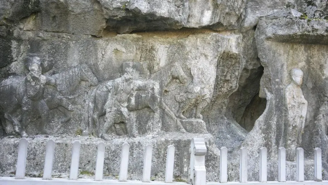 往前走来到清林洞,也称老虎洞。据我所知,这是飞来峰所有洞口里面洞口最大的一个地方,也是最漂亮的一个石窟之一。当时看的时候不只是我,其他的游客也都被震撼到了。右边雕着一尊卢舍那佛像的石像,那是卢舍那佛召开会议的场景,是这里面最精美的一个石雕,真是名不虚传!中间是卢舍那佛,左右两边分别是骑着狮子和大象的文殊菩萨和普贤菩萨,还有四大金刚护法,上面的两个仙女就是飞天。雕刻的极为精细,我和爸爸妈妈讲解的时候也讲得津津有味,忍不住在这里多看两眼。