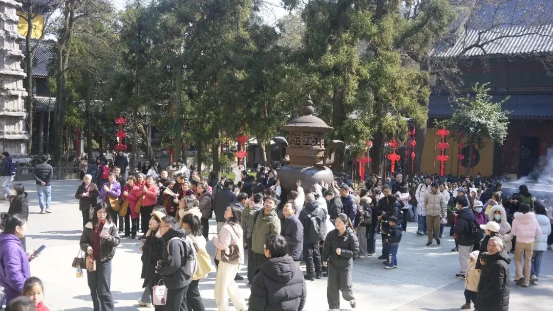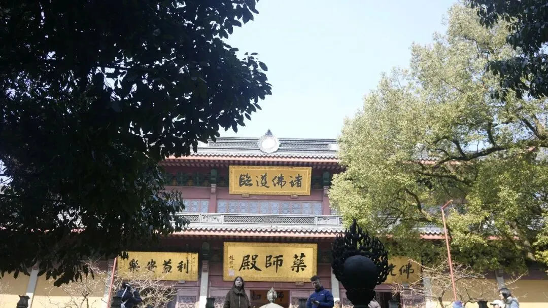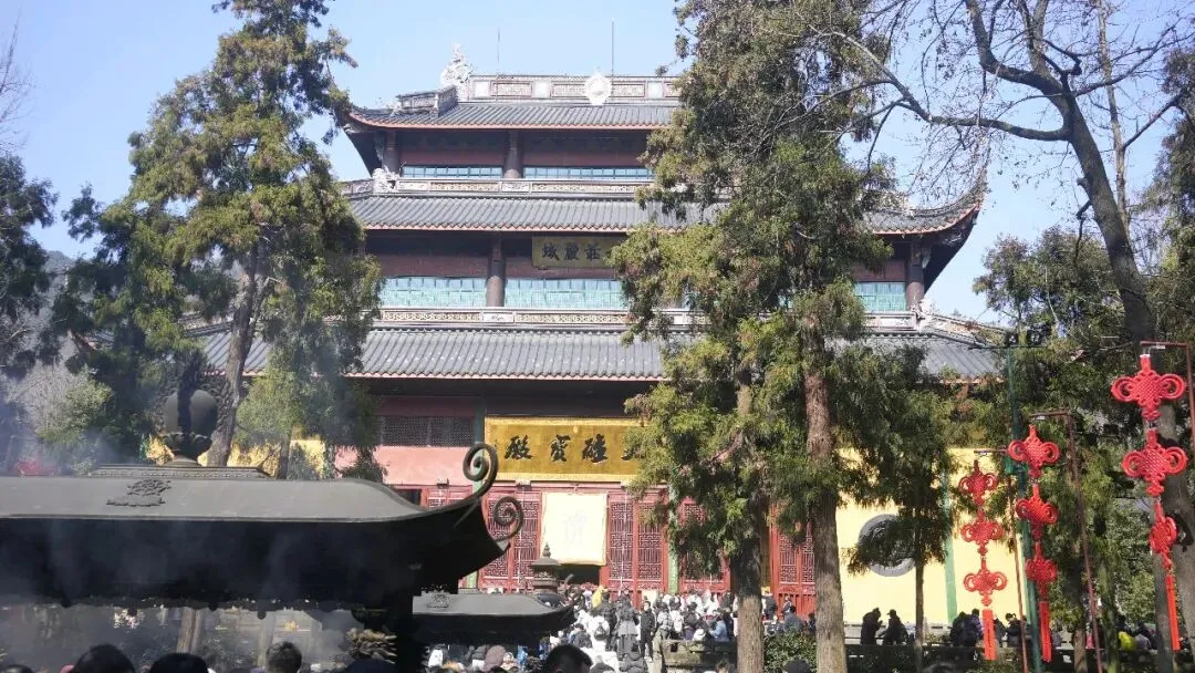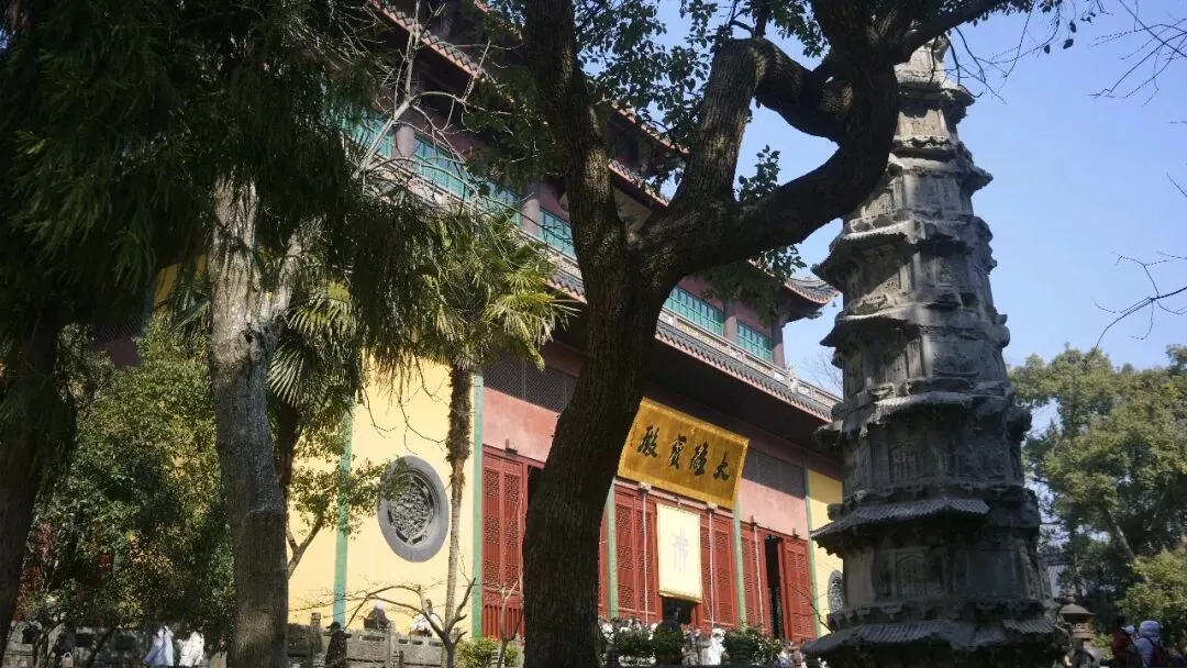 穿过天王殿,就到了大雄宝殿,这是灵隐寺最主要、最高大的殿堂。殿内供奉着释迦牟尼佛像,佛像高大庄严,神态慈悲,很多游客在这里安静地参观、行礼。