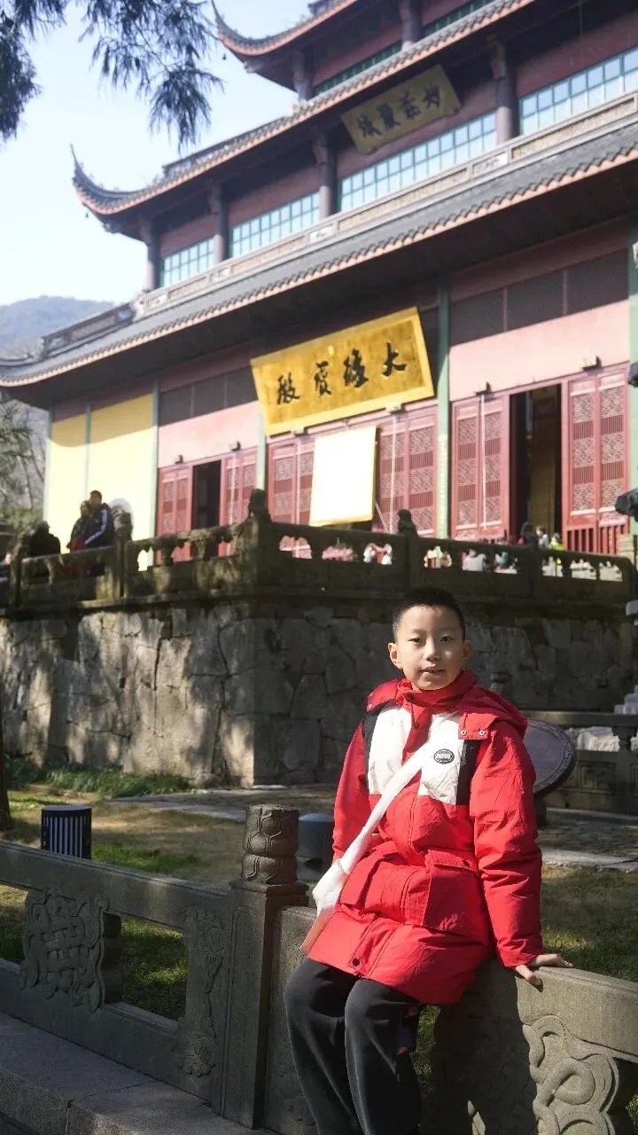 这次灵隐寺之行,让我感受到了中国古代建筑的精美,石刻艺术的了不起,也体会到了历史文化的厚重。千年古寺静静立在山林之间,见证着岁月的变化,也传承着文化与精神。和爸爸妈妈一起旅行,一起学习,一起欣赏风景,是一件特别幸福的事情。我暗暗决定,以后出去游玩之前,都要提前做好准备,多了解一些当地的历史和文化,既能让旅行更有收获,也能继续当家里的小讲解员,和家人分享更多有趣,有用的知识。