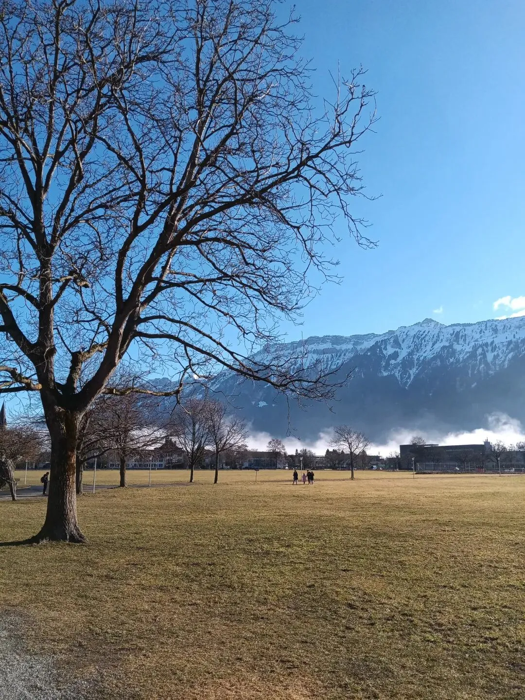 宽大的草坪在阿尔卑斯山下显得如此静谧。也许到了春天,这里会更美。