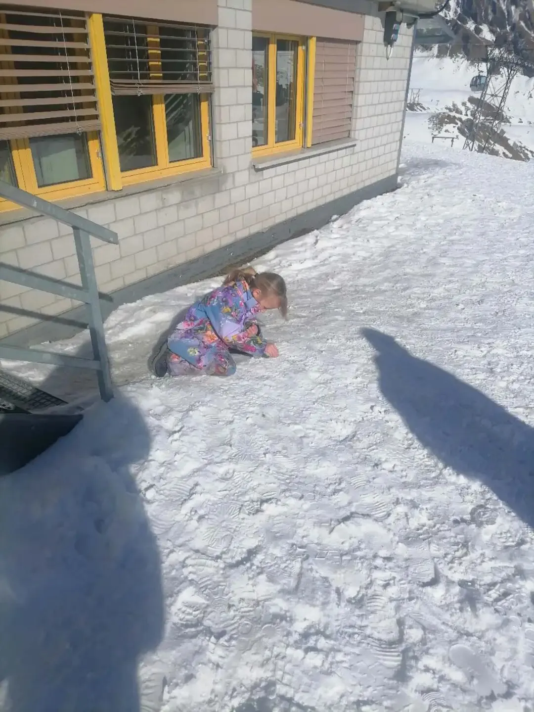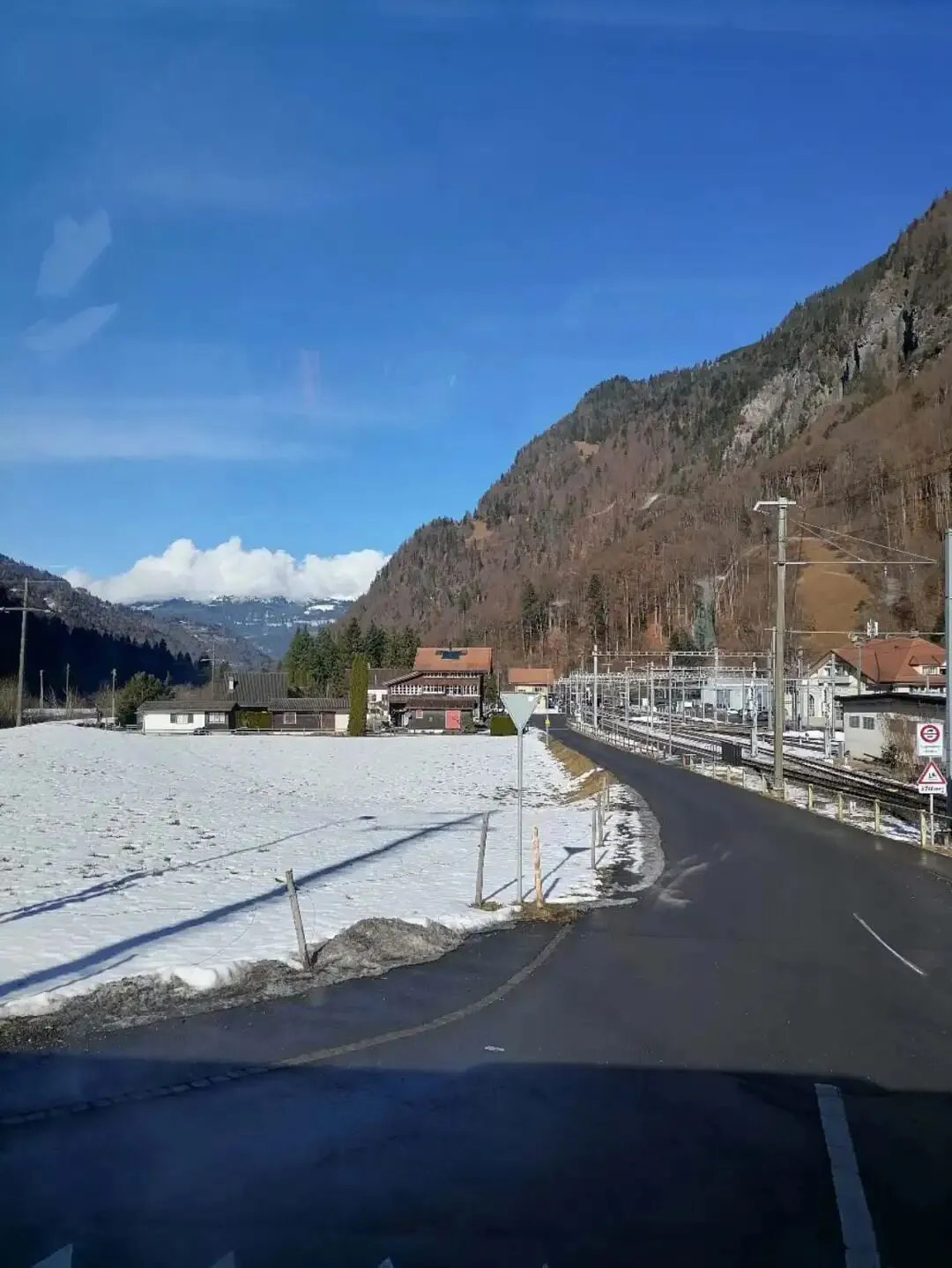 可以看到雪了。从因特拉肯到菲斯特雪山很近,十几分钟的车程就到了。