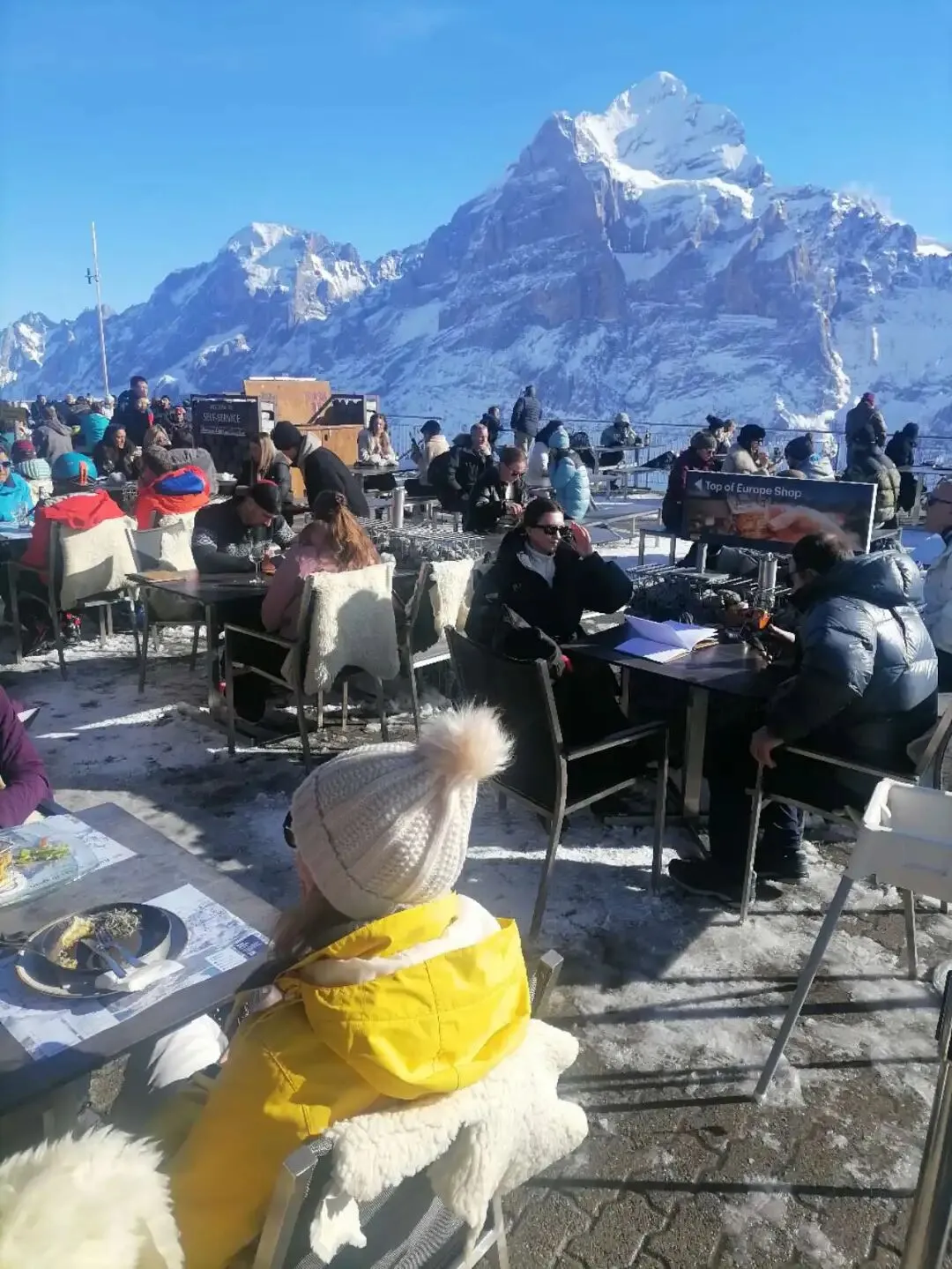 海拔2168米的菲斯特雪山属于阿尔卑斯山中段的一部分,我们坐缆车直达山顶。雪山之巅,一片洁白。山峰被白雪装点,显得更加峻峭。太阳出来了,照在雪地上,也照在我们身上,耀眼、温暖、美好。
