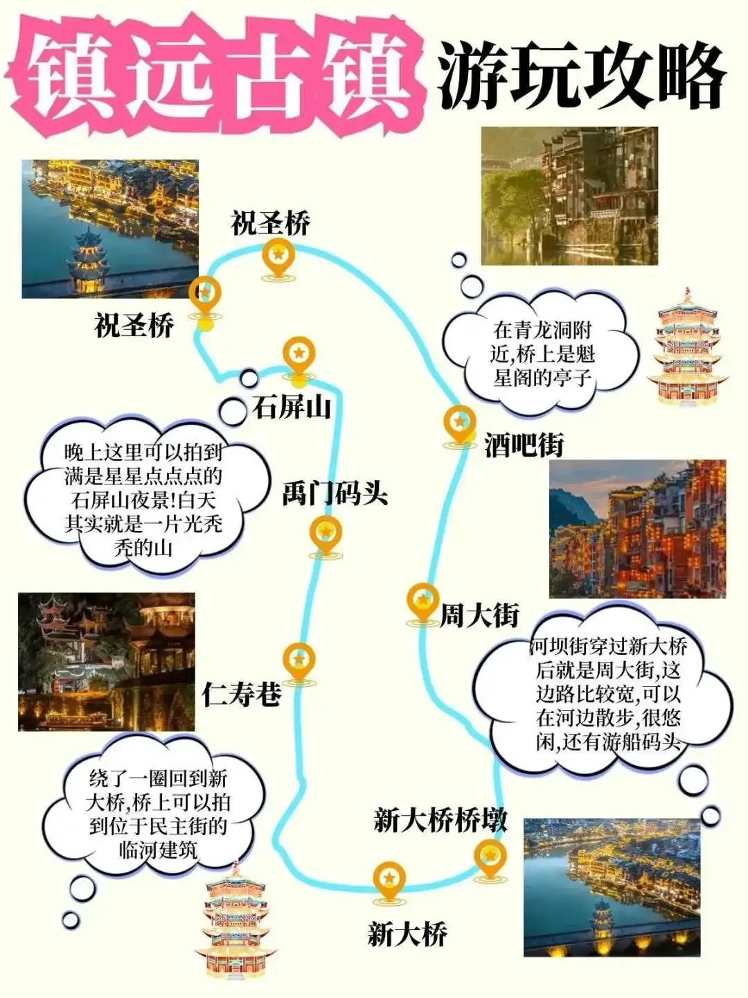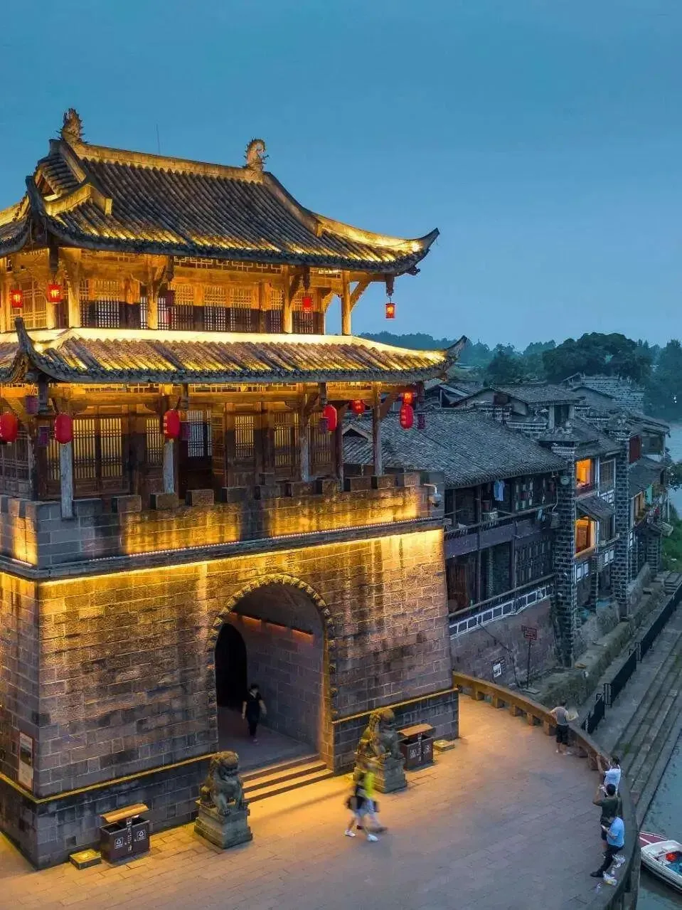 D1:.青龙洞古.建筑群. →..步行穿.越古镇巷道 → 夜游舞阳河 →. 看古镇夜.景