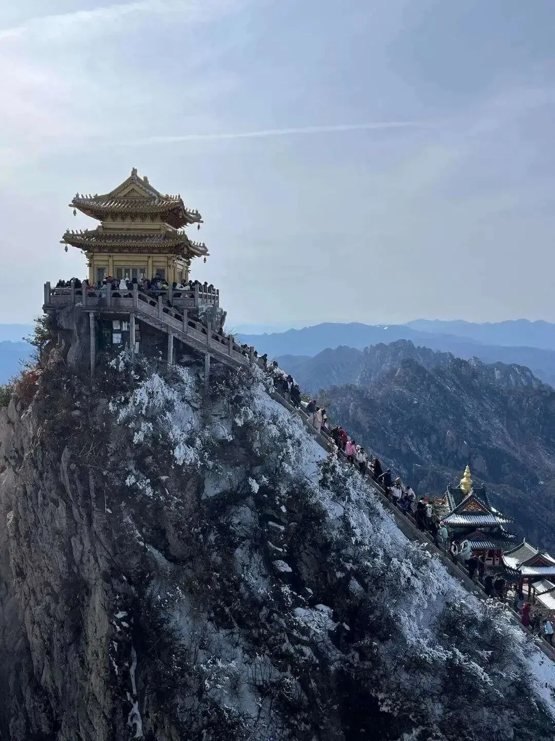 冬天雪后.去.,树.枝裹着冰壳.,台阶铺满雪。爬.到.十.里画屏,群山.白头,云.在脚下。山.顶道观群亮灯那一.刻,整座山像.天上宫阙,冷,但舍不得下山.。
