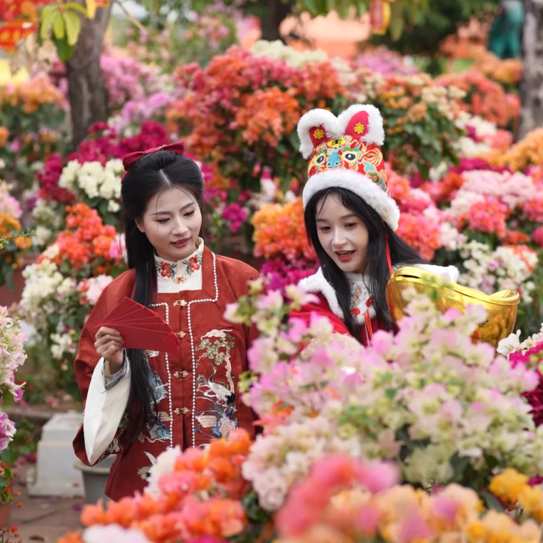 孩子们穿梭在花丛中,衣角沾染上淡淡的花香;情侣们依偎在花架下,让绚烂的花色定格甜蜜瞬间;长辈们沿着花间小径缓行,在繁花中感受新春的生机与暖意。这一片热烈盛放的勒杜鹃,不仅是春日的限定美景,更是新年里最动人的祝福,藏着 “花开富贵” 的美好寓意,等着你来赴一场绚烂的新春花事~