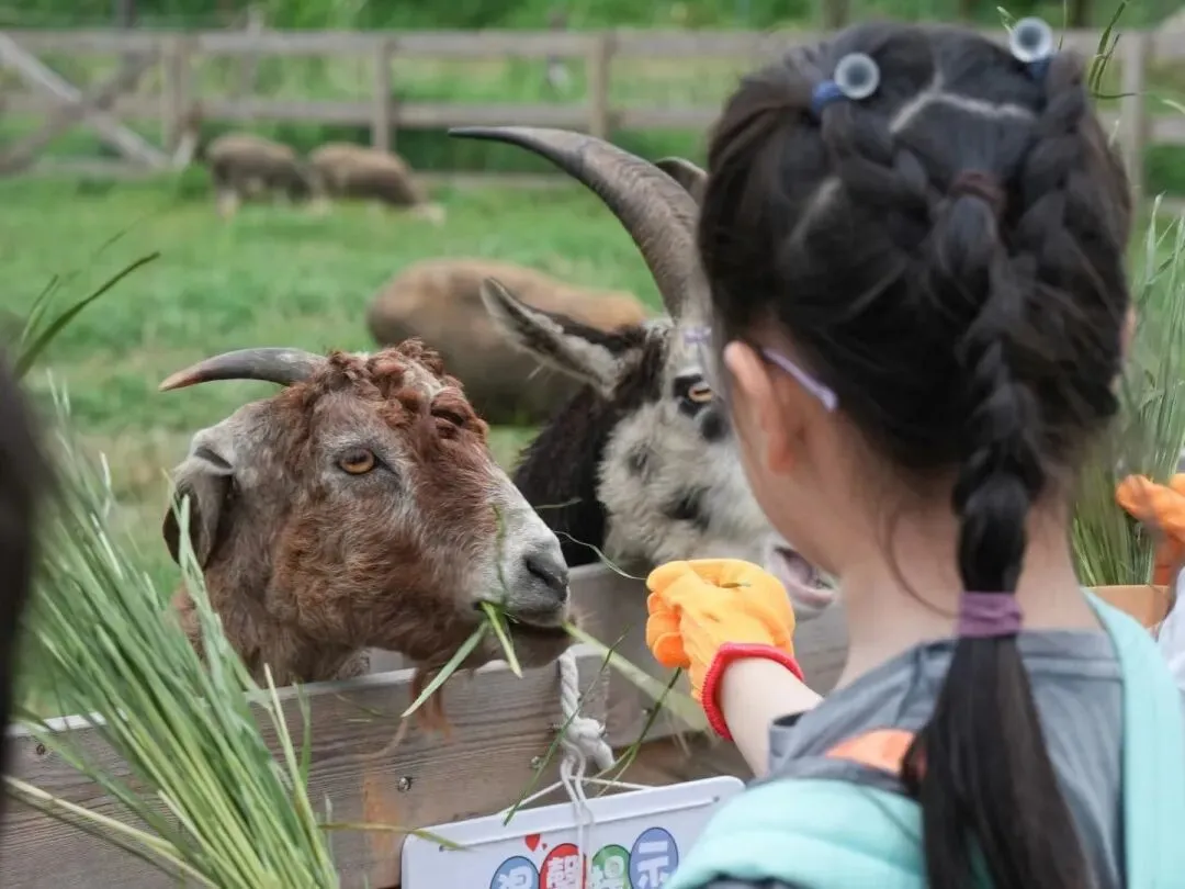 山羊们则是牧场里的调皮鬼,有的顶着短短的犄角,围着游客的裤腿转圈圈,有的后腿蹬着栏杆探出身来讨食,“咩咩” 的叫声清脆又奶气;伸手抚摸时,它们还会亲昵地蹭蹭你的手背,一点都不认生。