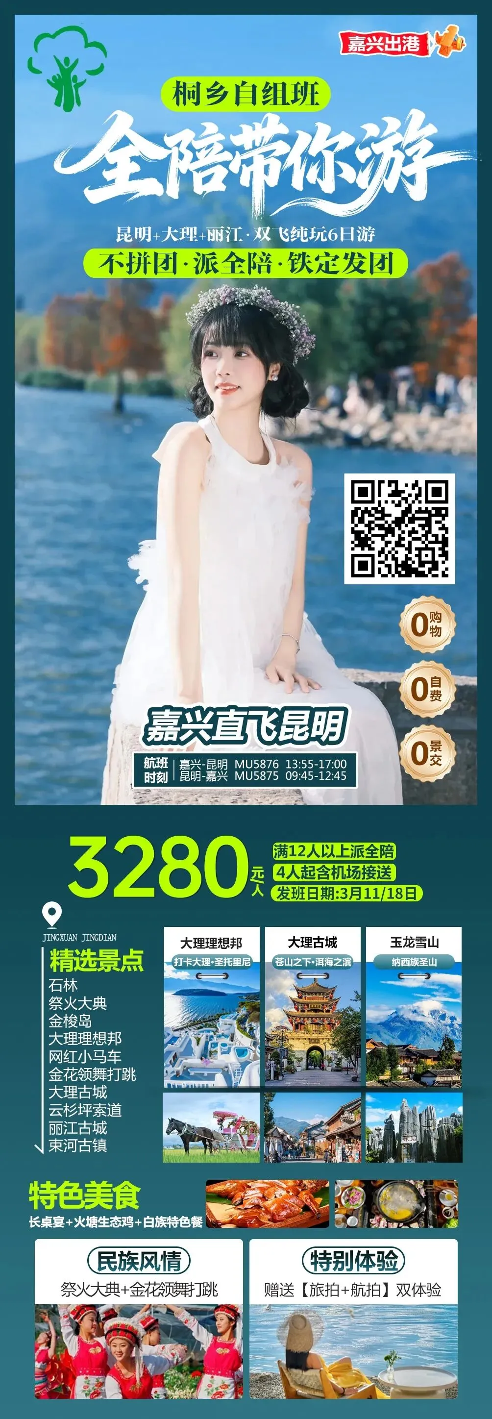 👍昆明大理丽江双飞纯玩6日游