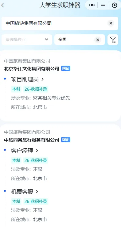 您现在的位置是:首页 > 国内旅游目的推荐 > 正文 国内旅游目的推荐 央企校招---中国旅游集团2026年校园招聘 admin2026年02月09日 14:43:32国内旅游目的推荐13 央企校招---中国旅游集团2026年校园招聘 转载请说明来源于"旅荐网",部分内容转载自网络,如有侵权请联系qlwl@foxmail.com删除 本文地址:https://www.15386.cn/post/98730.html 上一篇 18名台湾游客涌进福建泉州市,世遗景点不看闽南小吃不尝,专找路边60多岁的大爷聊天,真够机智的 下一篇 2025黄山旅游 相关文章 西北大环线7日跟团游玩攻略,西北大环线放心游玩 【厦门旅游】厦门最新最全春日赏花攻略,这17个花海错过等一年 新春到修水 马年更吉祥 | 春节假期修水旅游活动及优惠全攻略! 【旅游安全提示】请收下这份文旅消防安全攻略 泉州旅游周末三天两夜特种兵不请假攻略! 江西旅游三月/四月深度游保姆级攻略 收藏!畅游渭南旅游联票激活·预约·入园攻略一篇搞定! 一键收藏 | 超全的九江旅游攻略,国庆7天不重样! 外地来蒲城旅游,吃美食,各种攻略. 2026最新韩国旅游攻略 发表评论 取消回复 评论列表 这篇文章还没有收到评论,赶紧来抢沙发吧~