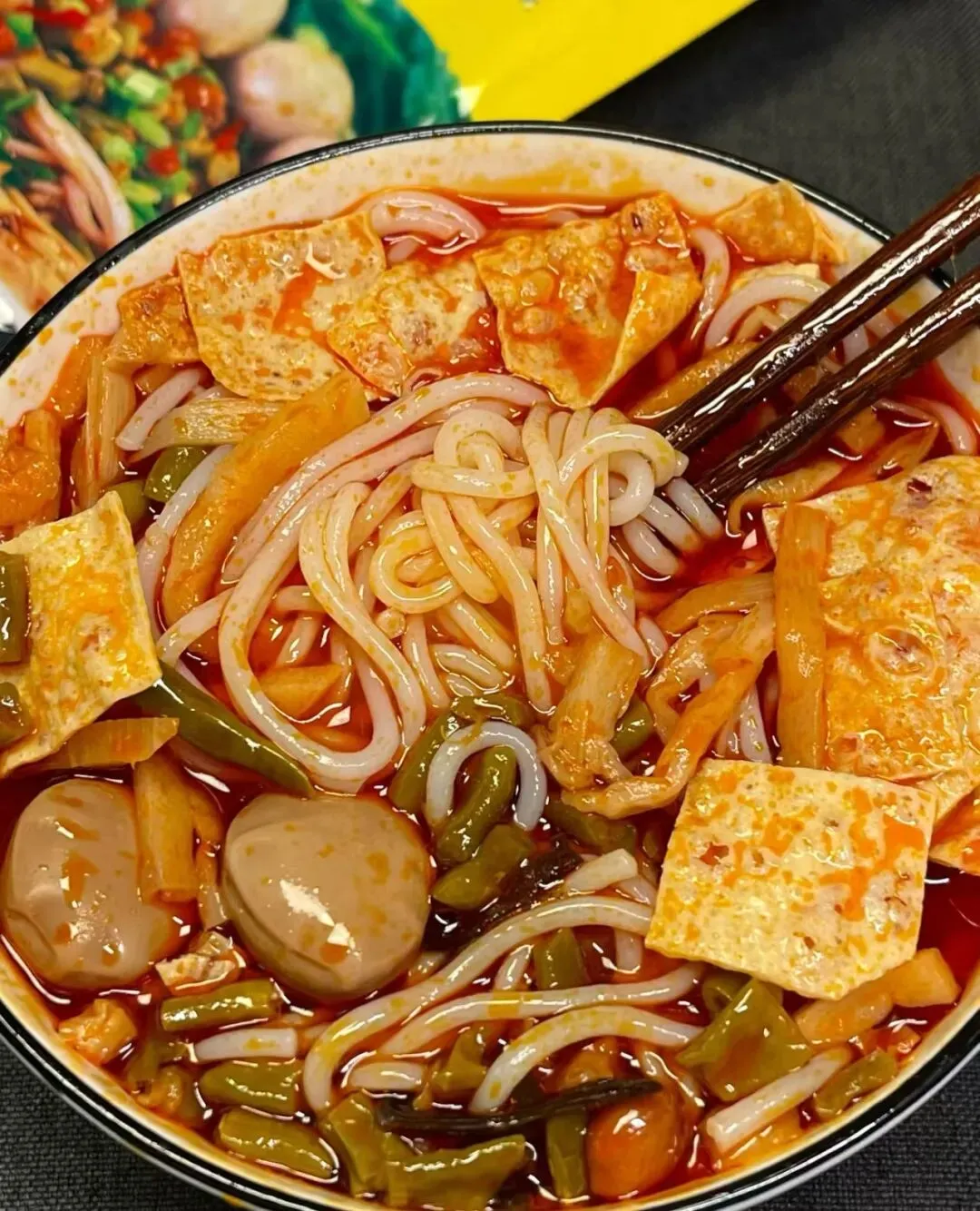 我上次去的时候。随便钻进一家老店,15块钱一碗,料给得超足。酸笋、木耳、花生、腐竹…… 一口下去,灵魂都在抖。