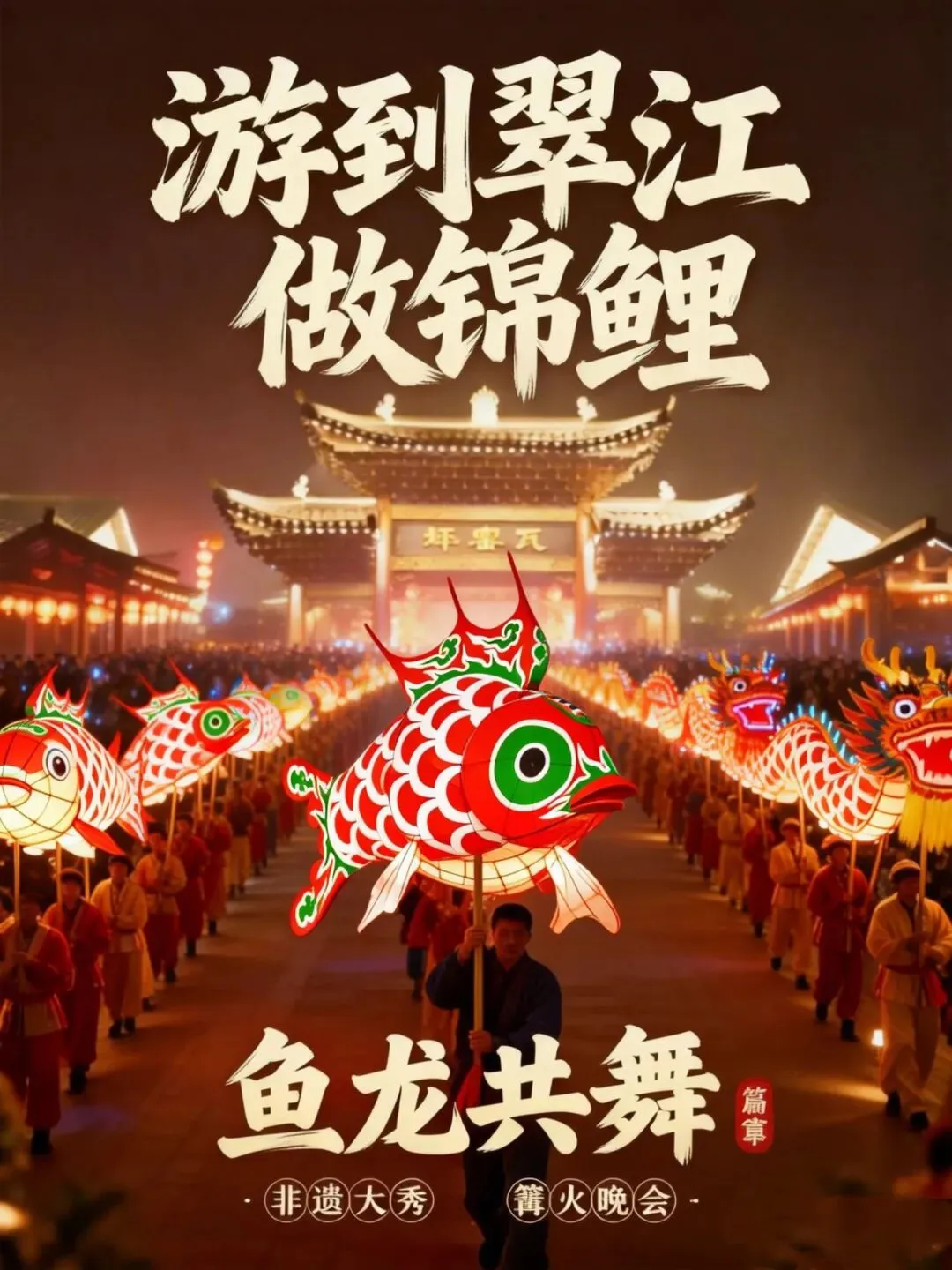 20:00 | 鱼灯夜巡:演员与游客共同举灯巡游,鱼影穿梭古街 。
