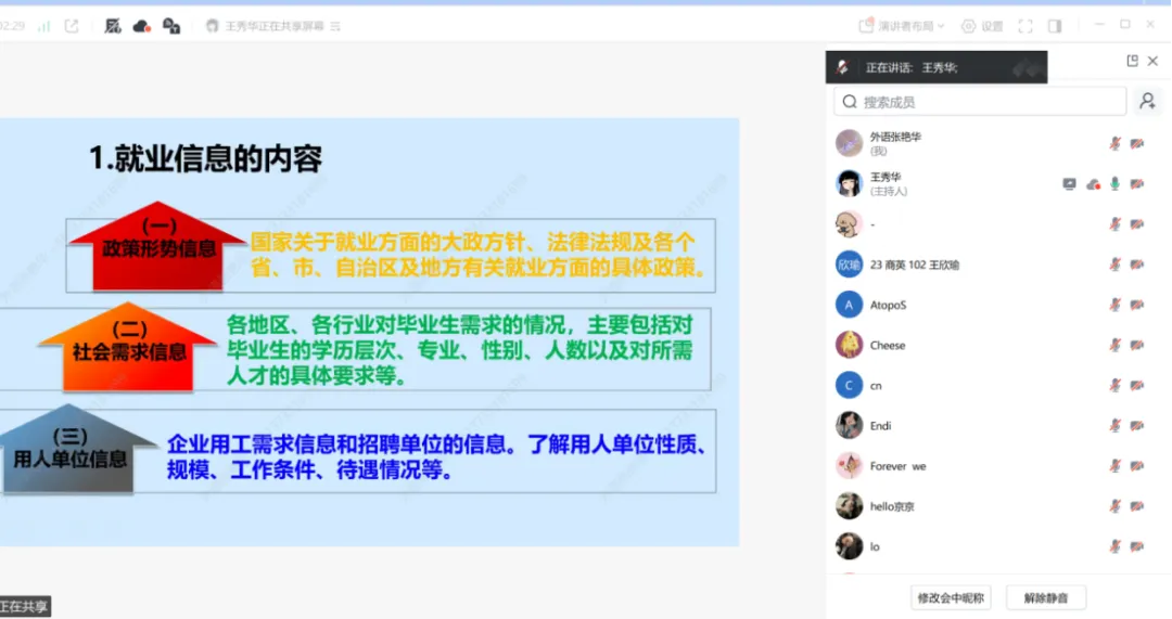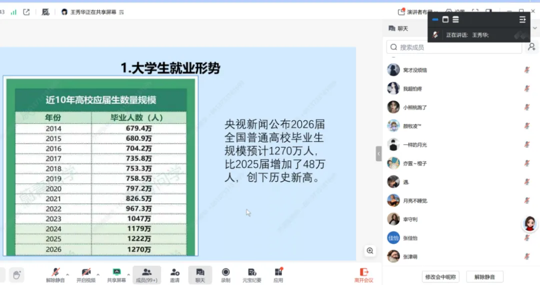 为全面落实全国及全省高校毕业生就业创业工作会议精神,深入贯彻教育部及河南省教育厅关于开展2026届高校毕业生“寒假促就业暖心行动”工作要求,2月 8日,外语与旅游学院精心组织开展2026届毕业生就业第一课专题讲座。学院党总支书记王秀华牵头主讲,为毕业生们送上了一堂干货满满、实操性强的就业指导课。全体辅导员和2026届毕业生线上同步参与。